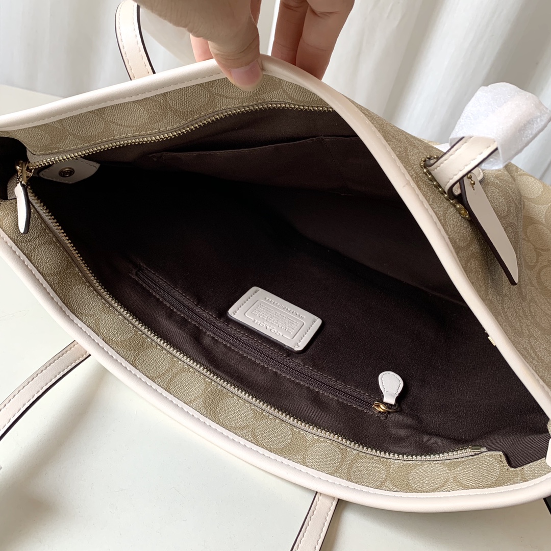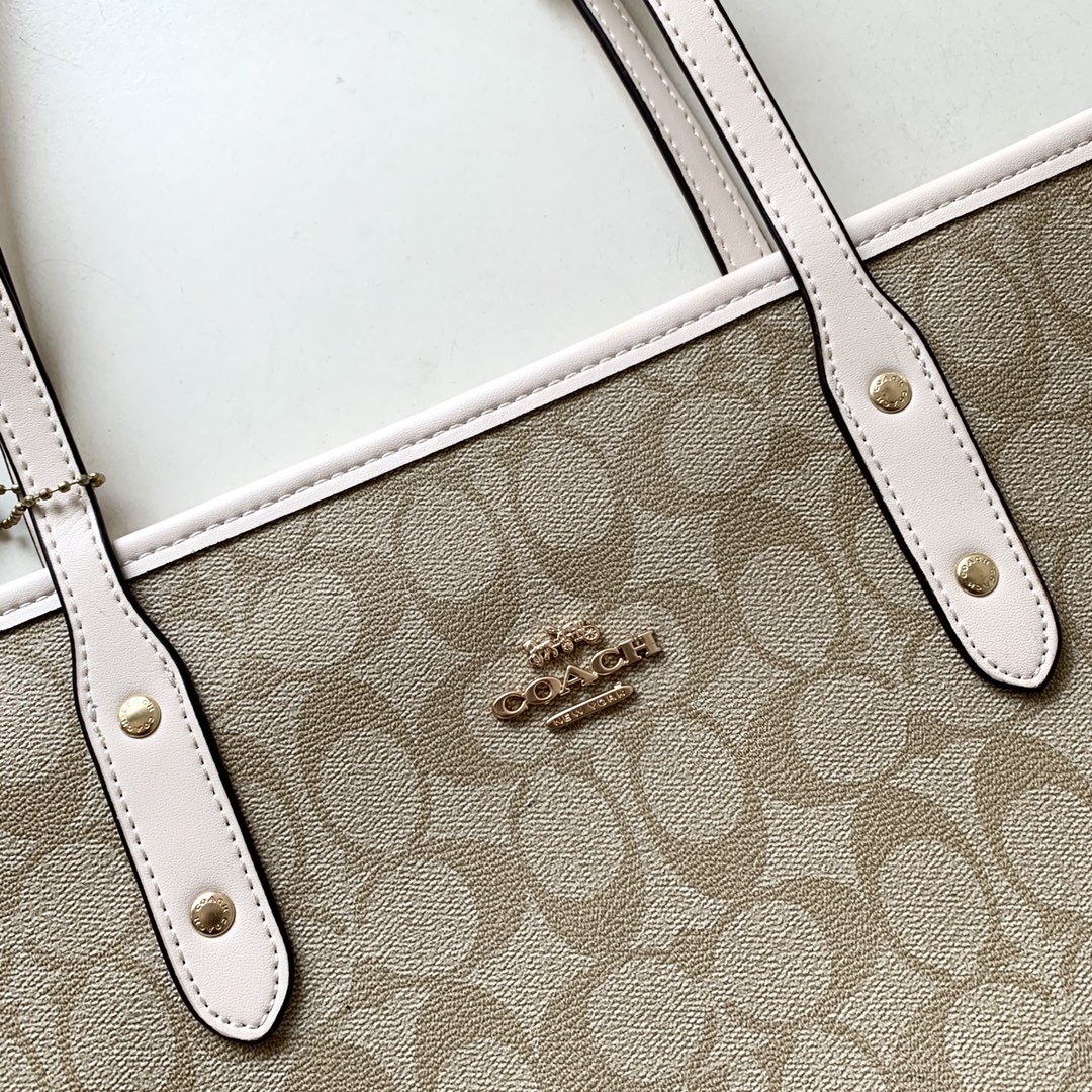 COACHの「Troupe Tote」は、1990年代のフレームバッグをモダンに進化させたデザイン。マグネット式トップフレームとターンロック留め金で安全性を確保し、メインコンパートメントは13インチノートPCも収納可能。シグネチャーCモノグラム帆布とレザーの組み合わせが上品な印象を与え、通勤から週末のショッピングまで幅広く活躍。内側はボルドー色のスエード調裏地で、実用的ながらも洗練された仕様です。