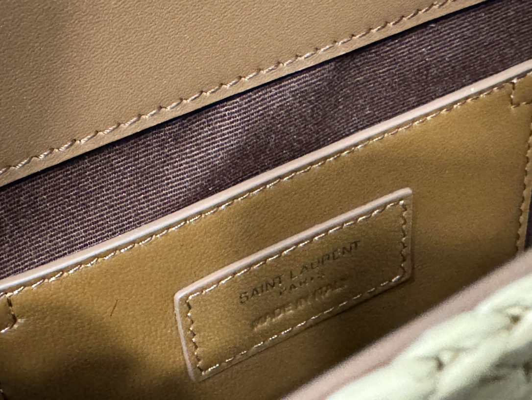 - モノグラム刺繍の匠の技: ラフィア地にYSLモノグラムを手刺繍した唯一無二のデザイン。