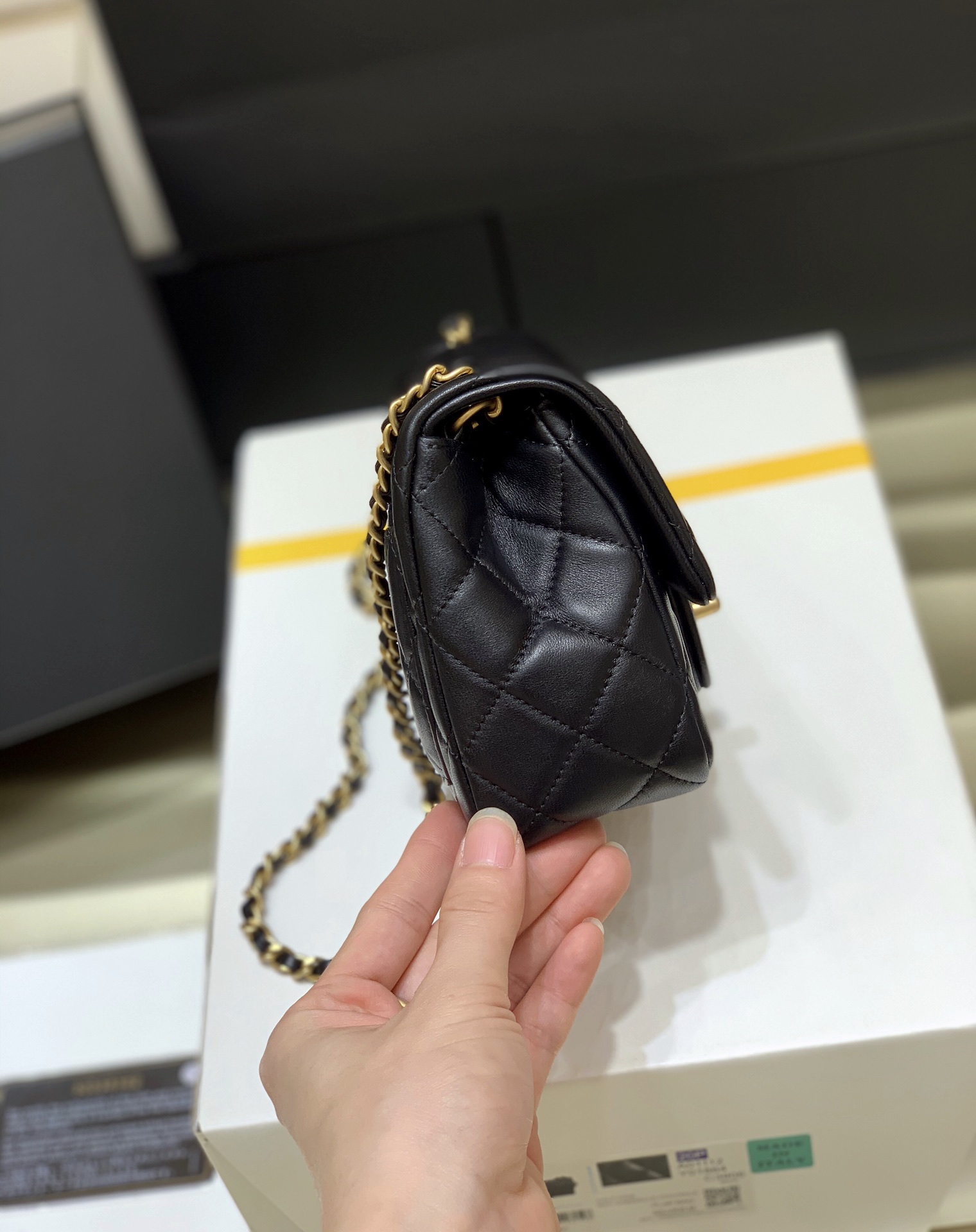 CHANELの象徴的な菱目縫いとダブルCロゴを採用。時代を超えて愛されるデザインで、エレガントな佇まいを演出します。 -