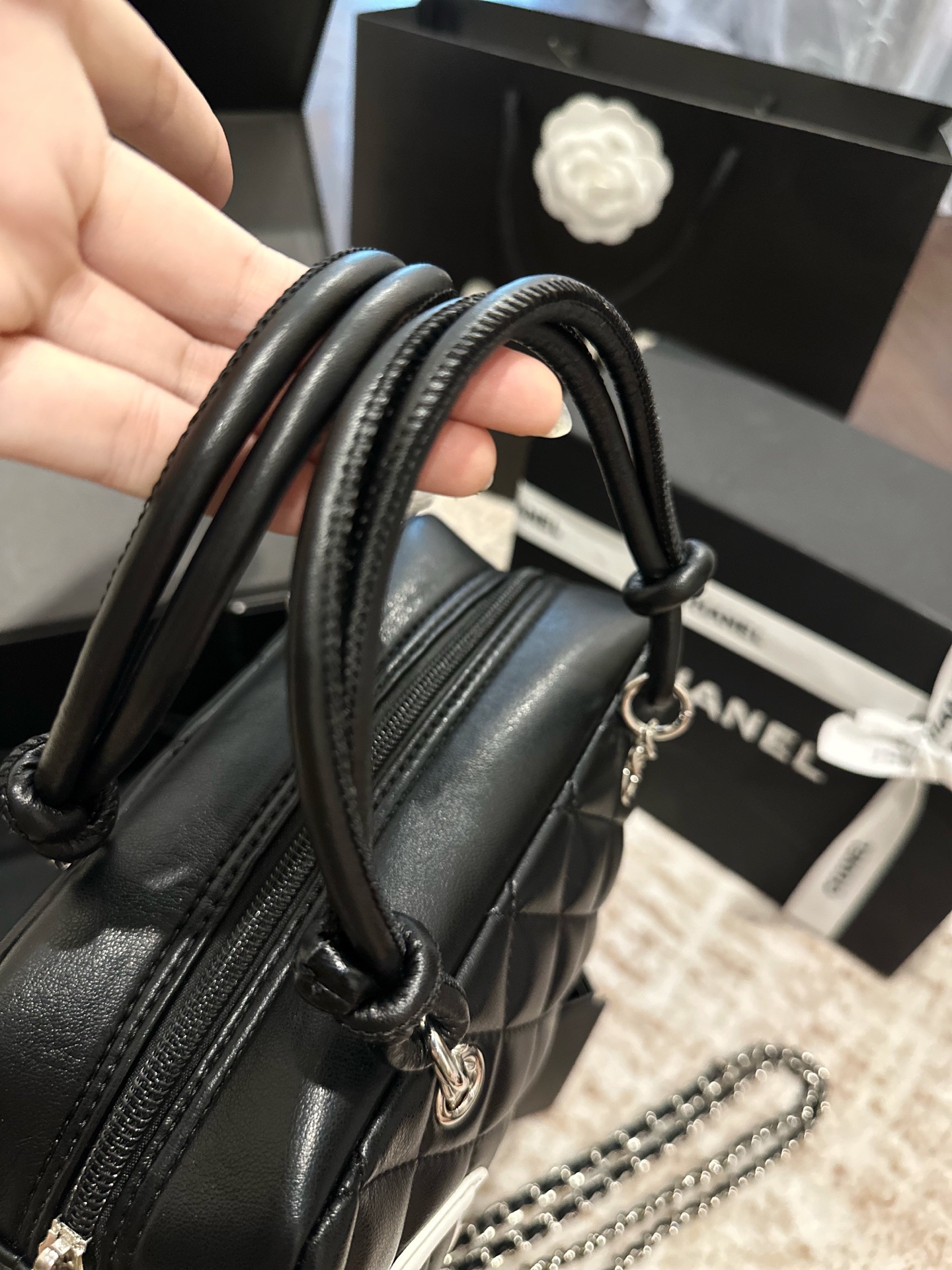 フランス製のラムスキンまたはキャビアレザーを使用し、CHANEL独自のキルティング加工が施されています。ゴールドまたはシルバーのハードウェアが上品な印象を与えます。 -