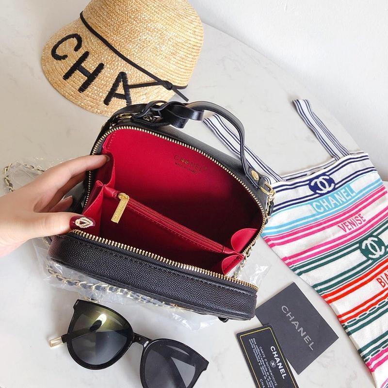 シャネルが贈る洗練されたヴァニティケース。14x18cmのコンパクトサイズながら、化粧品や小物をきちんと収納できる機能性を備えています。華やかなカラーと上質な素材が、女性らしいエレガンスを演出。バッグの中でも存在感を放つ、特別なアイテムです。
