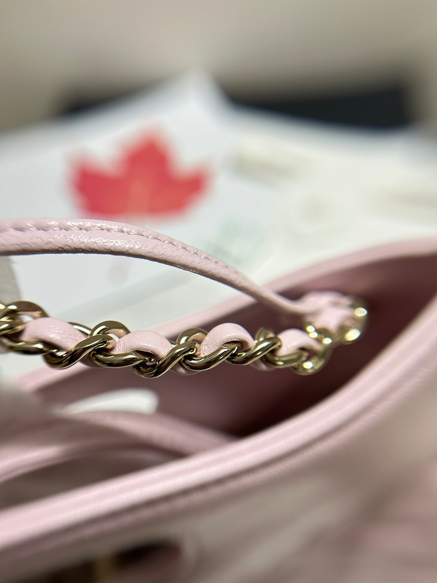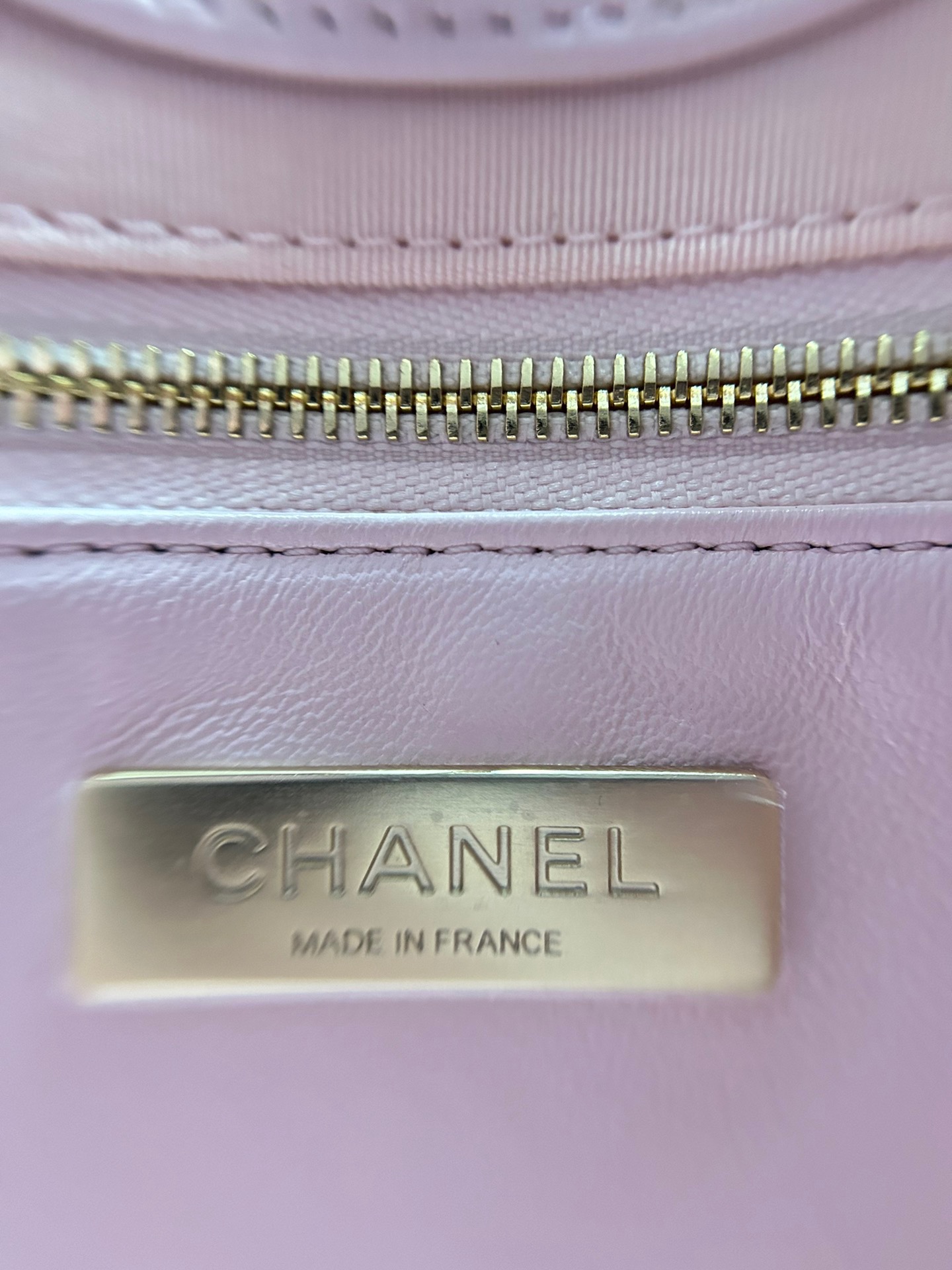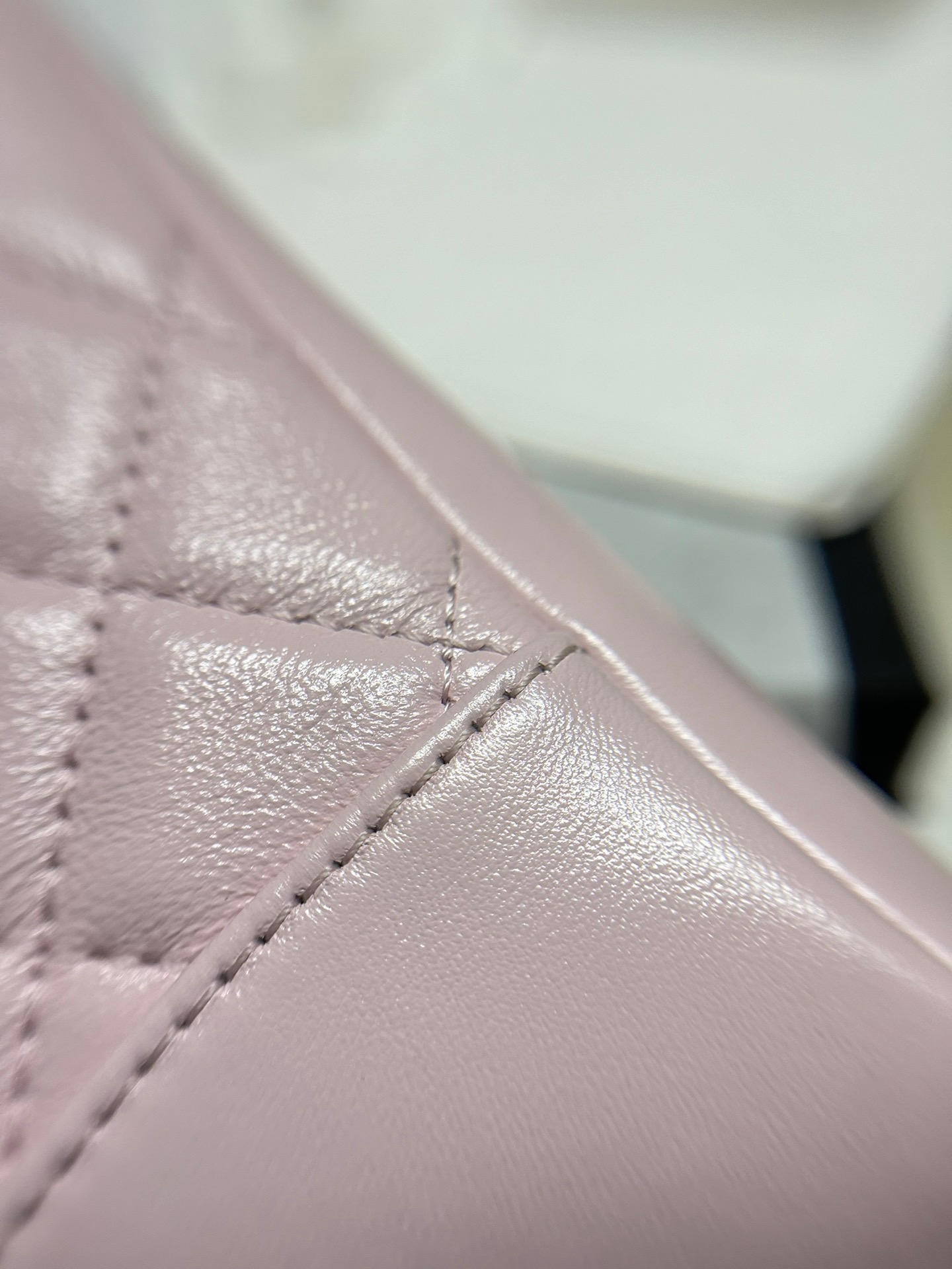 フランス製のラムスキンまたはキャビアレザーを使用し、CHANEL独自の縫製技術で仕上げられています。経年変化による風合いの変化も魅力の一つ。 -