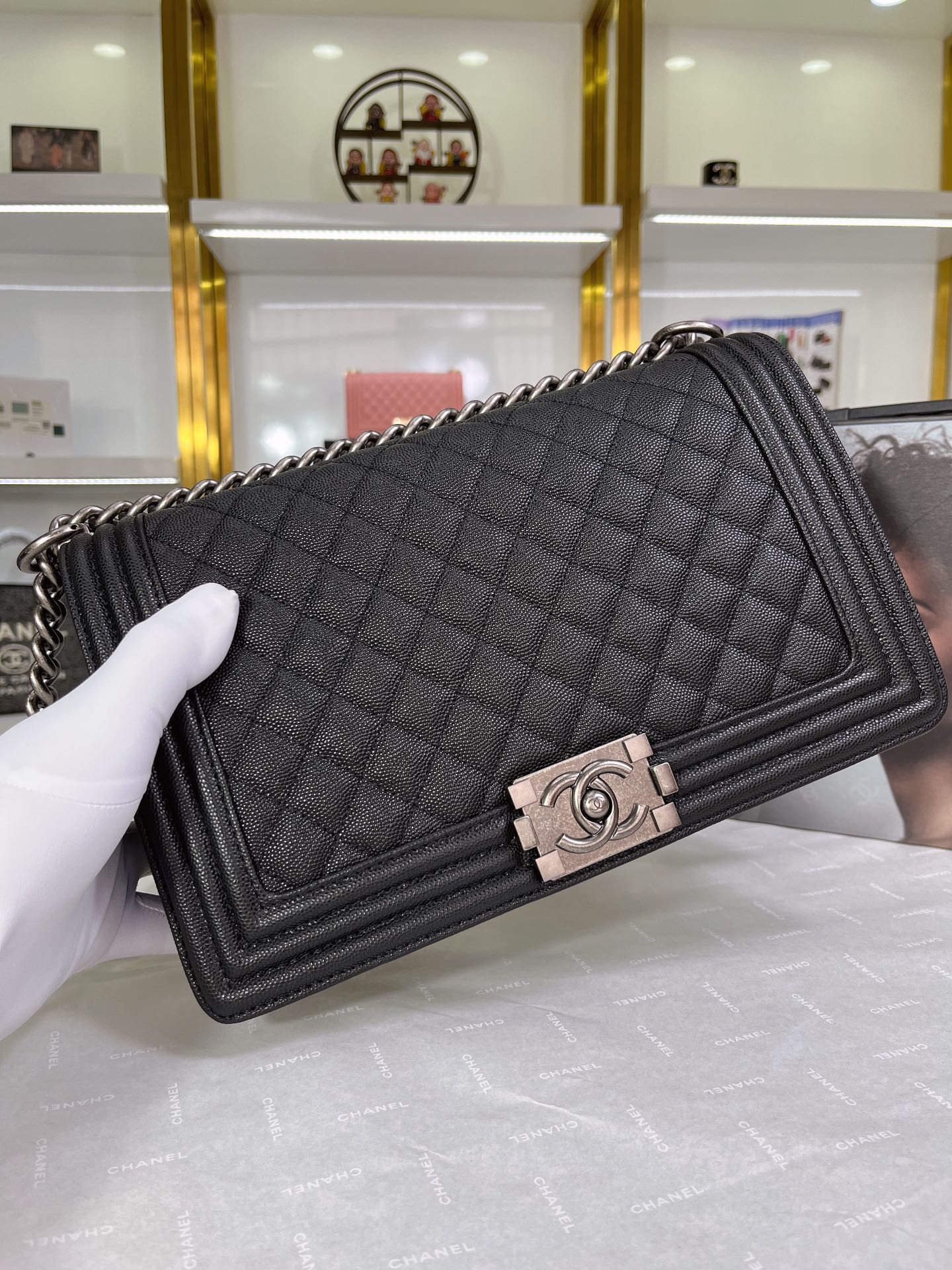 菱目縫いとダブルCロゴで知られるシャネルのDNAを継承したシルエット。 -