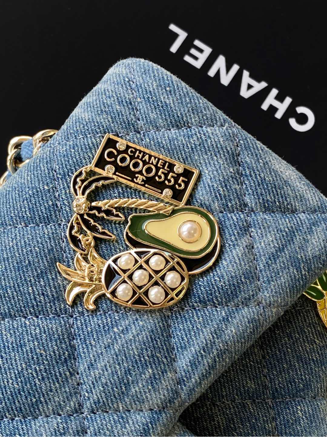 CHANEL限定ヴィンテージシリーズのパッチデニムバッグは、1990年代後半にリリースされたコレクターズアイテム。水洗い加工のデニム地に、ゴールドメタリックの徽章(パッチ)とダブルCロゴをあしらったユニークなデザインが特徴。サイズは縦20x横25xマチ7cmで、チェーン付きショルダーバッグとして使用可能。内側にはカードポケット2か所とファスナー付き小銭入れを備え、実用性も兼ね備える。カラーはインディゴブルーと限定のホワイトウォッシュの2色展開。
