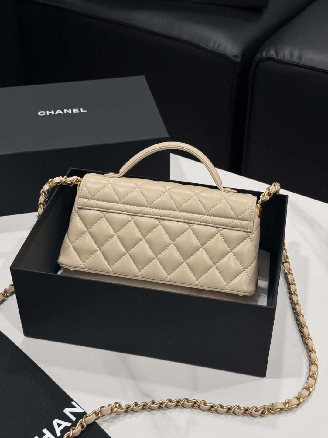 シャネル2025年サマーコレクションより登場した、エレガントなケリーバッグ。ブラックレザーとゴールドハードウェアのコントラストが洗練された雰囲気を演出。12x22x6cmの横型サイズで、日常使いに最適な収納力を持ちながら、コンパクトで持ち運びやすいデザイン。ハンドヘルド、ショルダー、クロスボディと3WAYで使用可能。