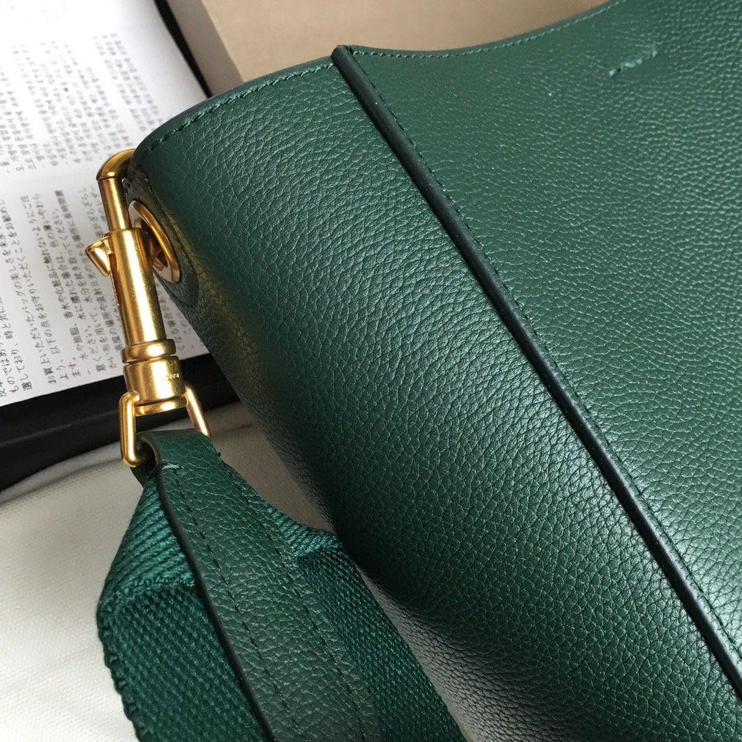 17.5×24.5x12cmのコンパクトサイズで、2025年春夏コレクションの新作バケットバッグ。ソフトグレインレザー(粒目加工小牛皮)を使用し、内側にはスエード調の滑らかな裏地を採用。上部に金色のフック式ロックを配し、着脱可能なウールショルダーストラップで2WAYスタイリングが可能。メインコンパートメントに加え、内側のフラットポケットとジッパーポケットで小物整理にも便利。約650gの軽量設計で日常使いに最適。