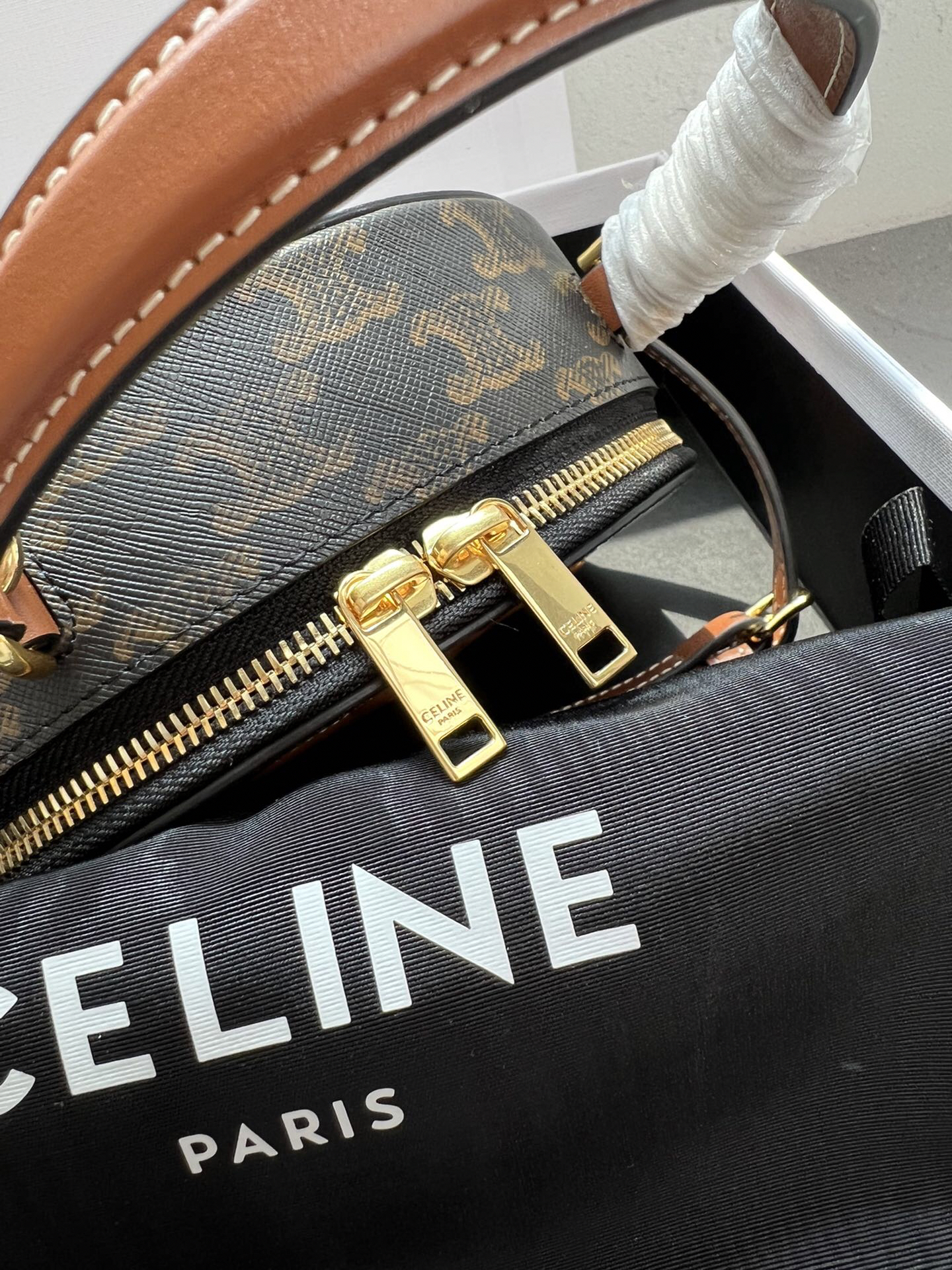 - アイコニックなデザイン: 凱旋門をモチーフにした「TRIOMPHE」ロゴプリントと浮き彫り皮革パッチの組み合わせで、洗練されたブランドアイデンティティを表現。