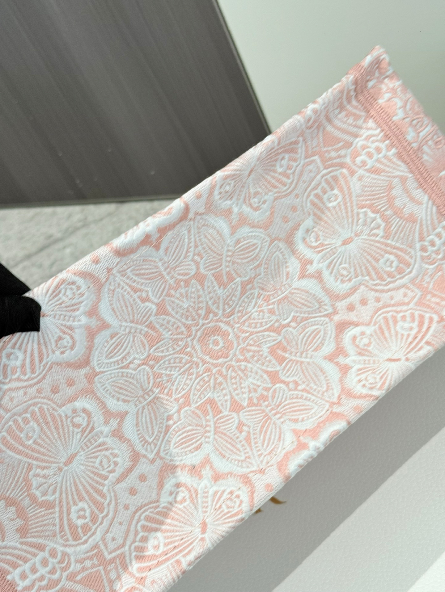 マリア・グラツィア・キウリが発表した「ディオール ブックトート」は、ディオールの美意識を語る上で今や不可欠なスタイル。毎日必要なものをまとめて収納できるようデザインしています。牧歌的でエレガントなパターンで野に咲く花を表現した、ピエトロ・ルッフォによるピンク系マルチカラーの「D-Floral (D-フローラル)」モチーフを全面に刺繍しました。フロントにChristian Dior Parisシグネチャーを添え、メゾンを象徴するサヴォワールフェールを体現した。