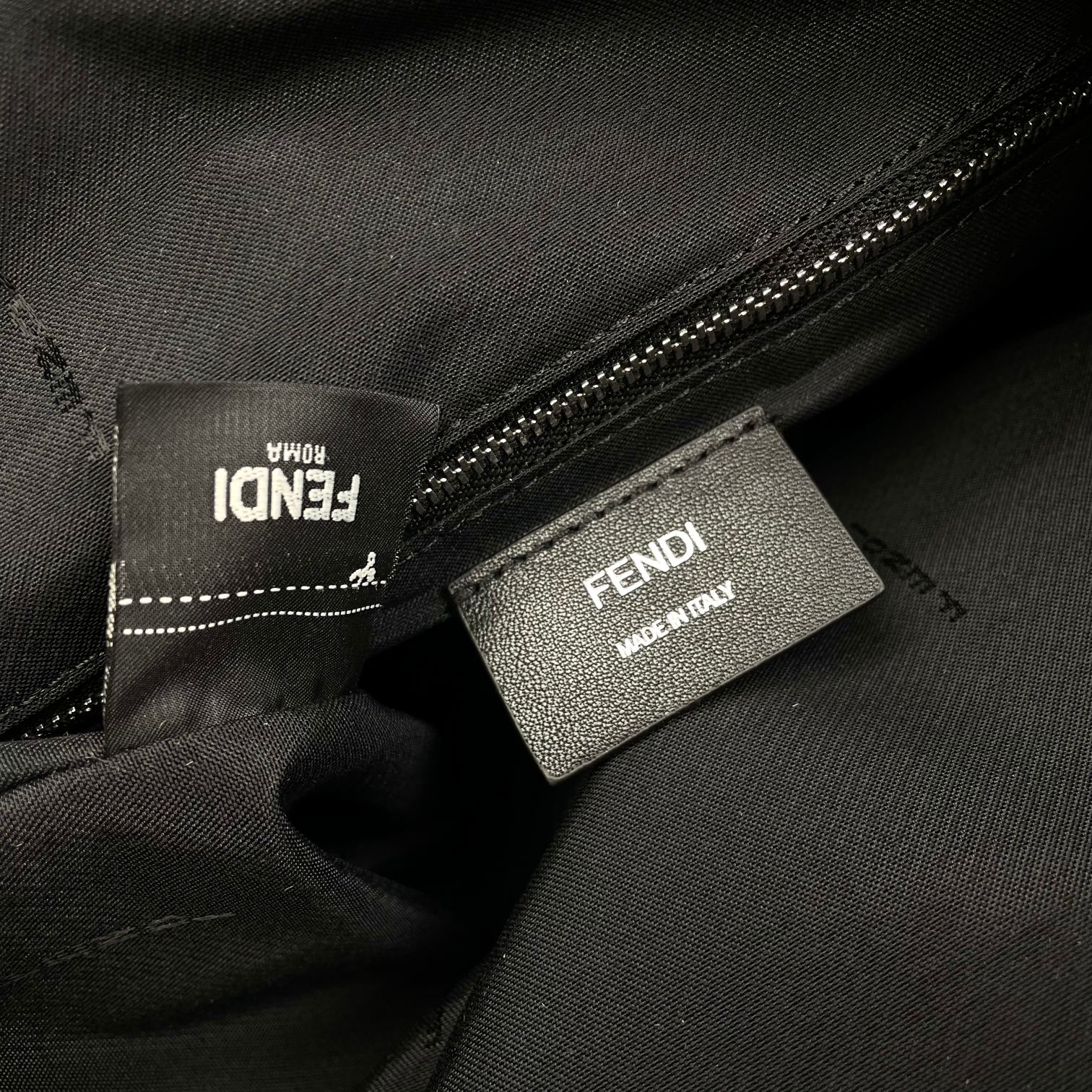 FENDIの定番ダブルFモチーフをあしらったバックパックで、プレミアムレザーとナイロンのコンビネーション素材を使用。ブラックベースにシルバー調のメタルハードウェアがアクセントとなり、メインコンパートメントには13インチノートPCが収納可能。調整可能なパッド入りショルダーストラップと背面スリットポケットを備え、イタリア製の高い品質が特徴。