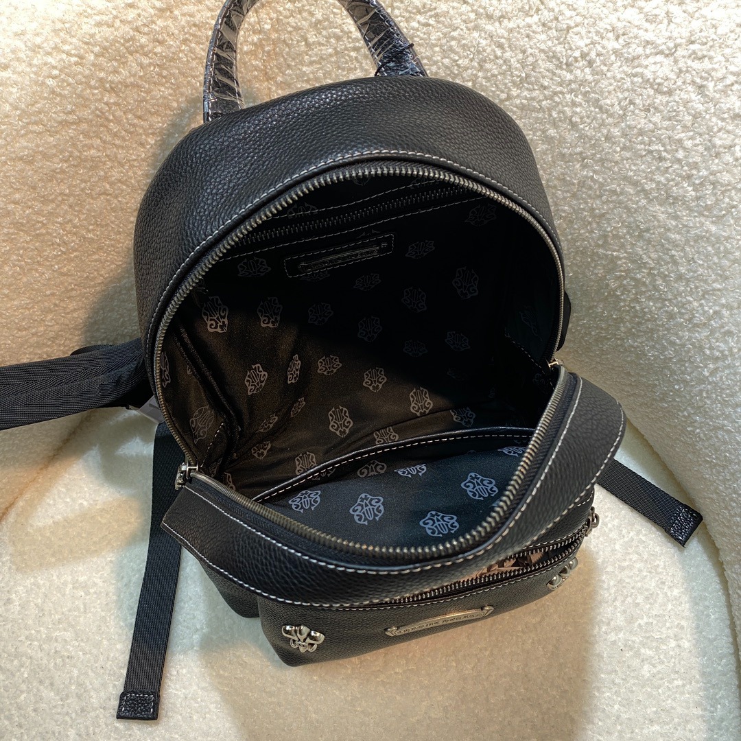 型意兼具 FENDI シリーズの新作リュック「Chiodo」。遊び心を追求したデザインで、革新的なスライド式ショルダーストラップを採用。肩掛け・斜め掛け・ハンドキャリーと自由にスタイルチェンジ可能。モノグラムFFロゴにメタリックFFモチーフを重ねたアイコニックな外観が特徴。コンパクトなSサイズ(24cm x 36cm x 12cm)と実用性抜群のLサイズ(33cm x 43cm x 14cm)の2展開。軽量ボディで日常の移動をスタイリッシュに彩ります。