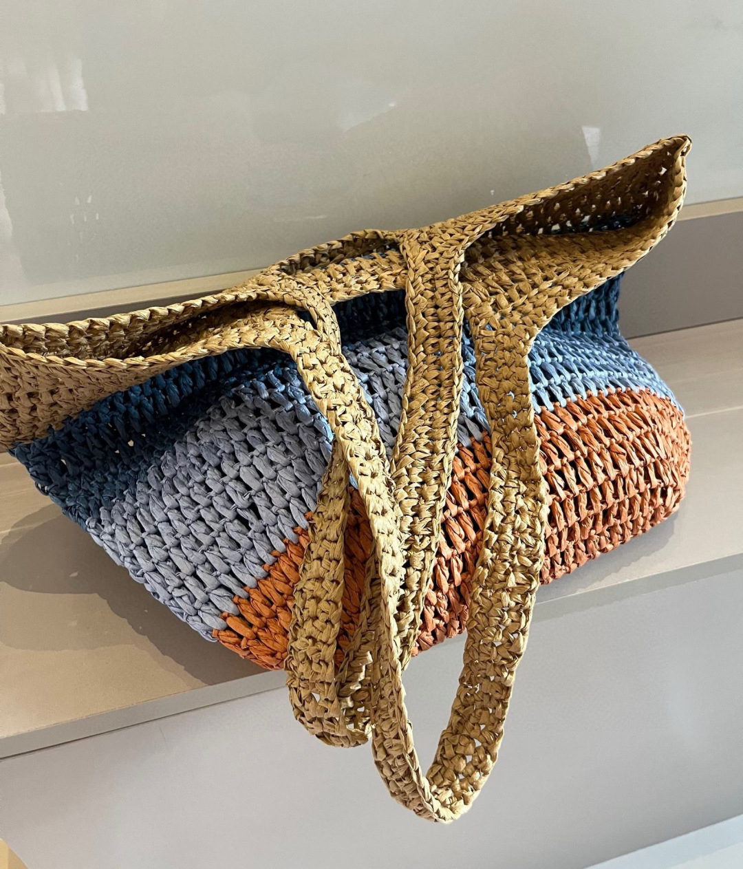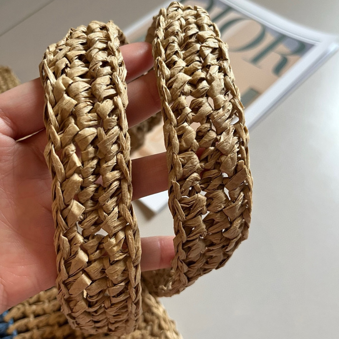 ラフィアの立体編み模様が光の陰影で表情を変化させ、写真映えする3Dテクスチャーを形成。トレンド発信者に最適なビジュアル性。 -