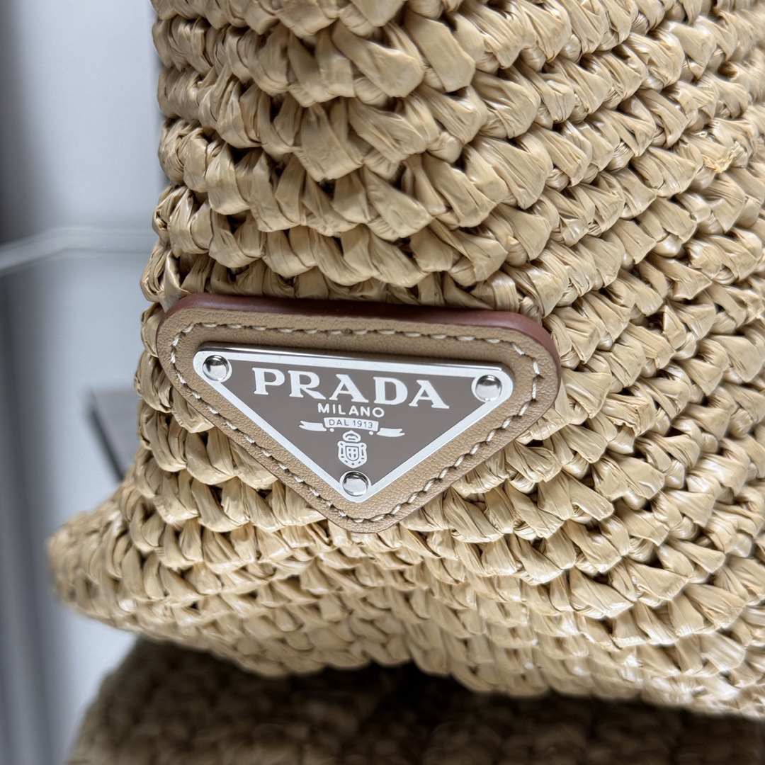プラダの新作「ラフィアファイバー トートバッグ」は、輸入ラフィア草を高度なハンドメイド技術で緻密に編み上げたアート作品のようなデザイン。1点1点職人が手作業で仕上げるため、唯一無二の質感と風合いを実現。長さ38cmx高さ31.5cmx底幅15cmの大型ボディは、ビーチグッズや日常品まで余裕を持って収納。ナチュラルな素材感とプラダのシグネチャーであるメタルロゴが、洗練されたリゾートスタイルを演出します。