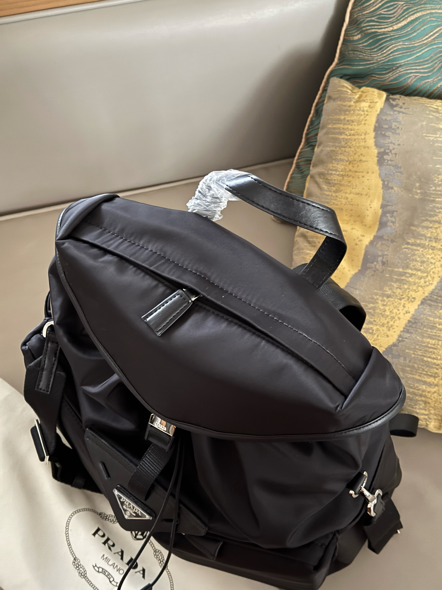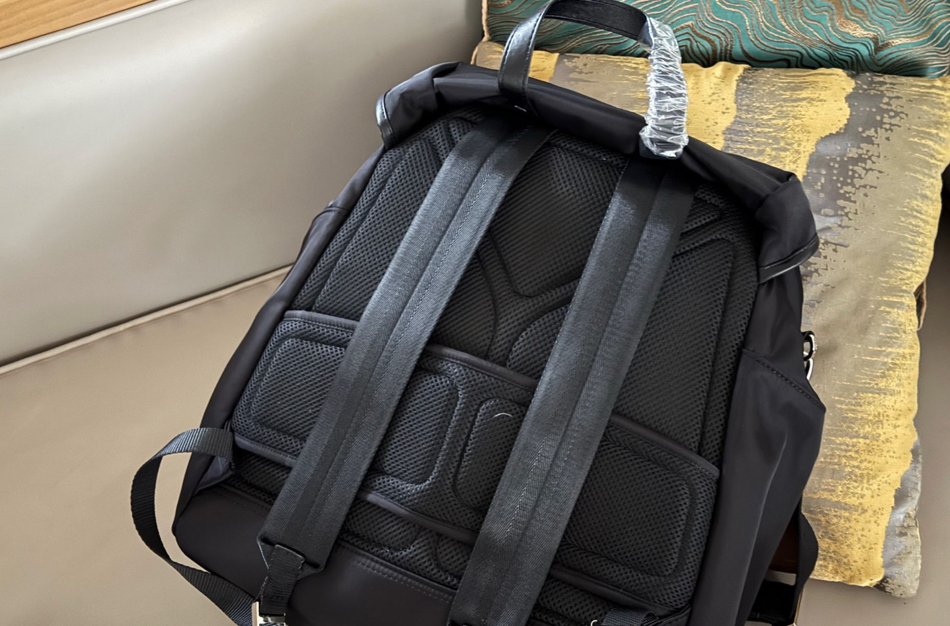 プラダ2024年ショーコレクションのハイライトアイテムであるこのナイロンバックパックは、航空業界インスパイアのテクニカルナイロン素材を採用。H46xW37cmの大型ボディは15インチノートPCやA4ファイルを余裕で収納可能。リュックサック・ショルダーバッグ・トートの3WAYキャリーを実現する脱着式ストラップシステムを搭載。メインコンパートメント内にはクッション付き電子機器スペースとファスナーポケットを配置し、機能性とプロテクション性を両立。前面に施したミリタリーインスパイアのジップディテールが、ユーティリティとハイファッションの融合を体現しています。