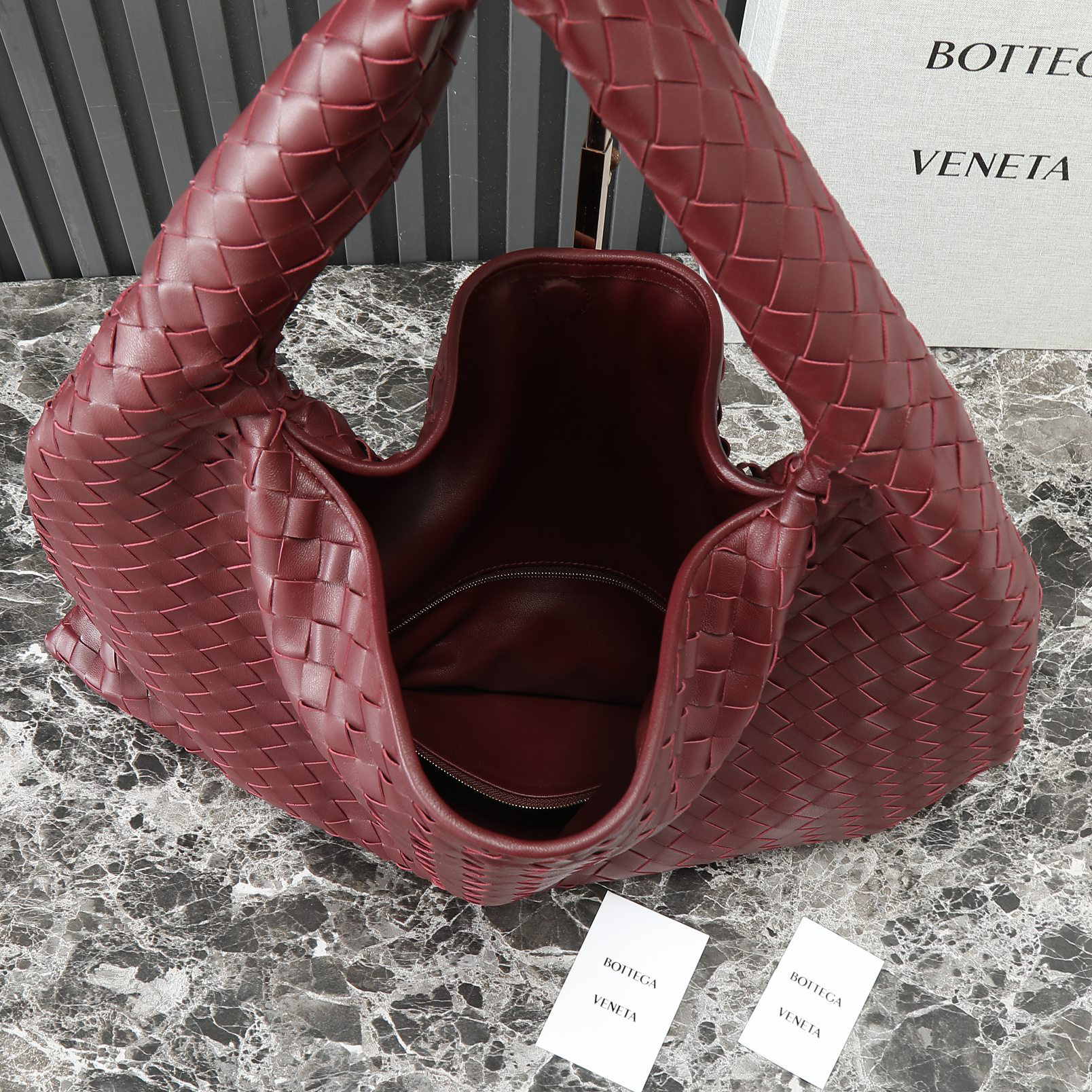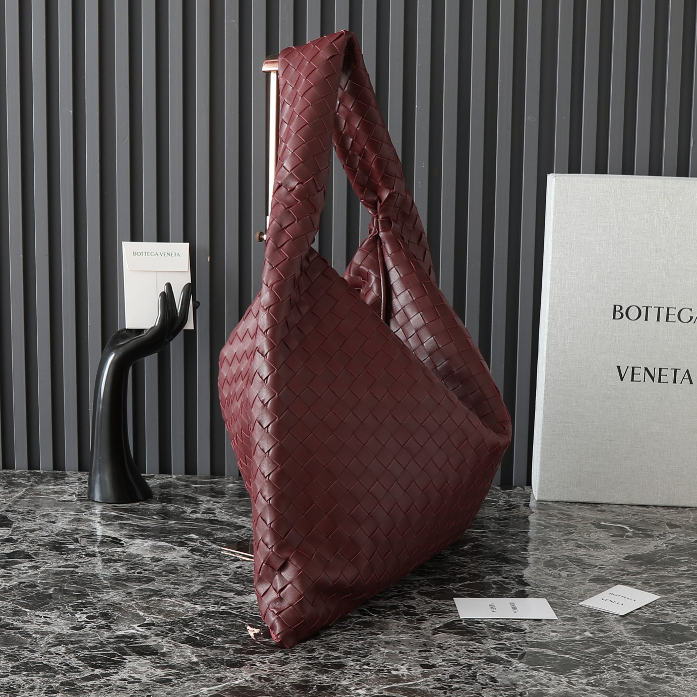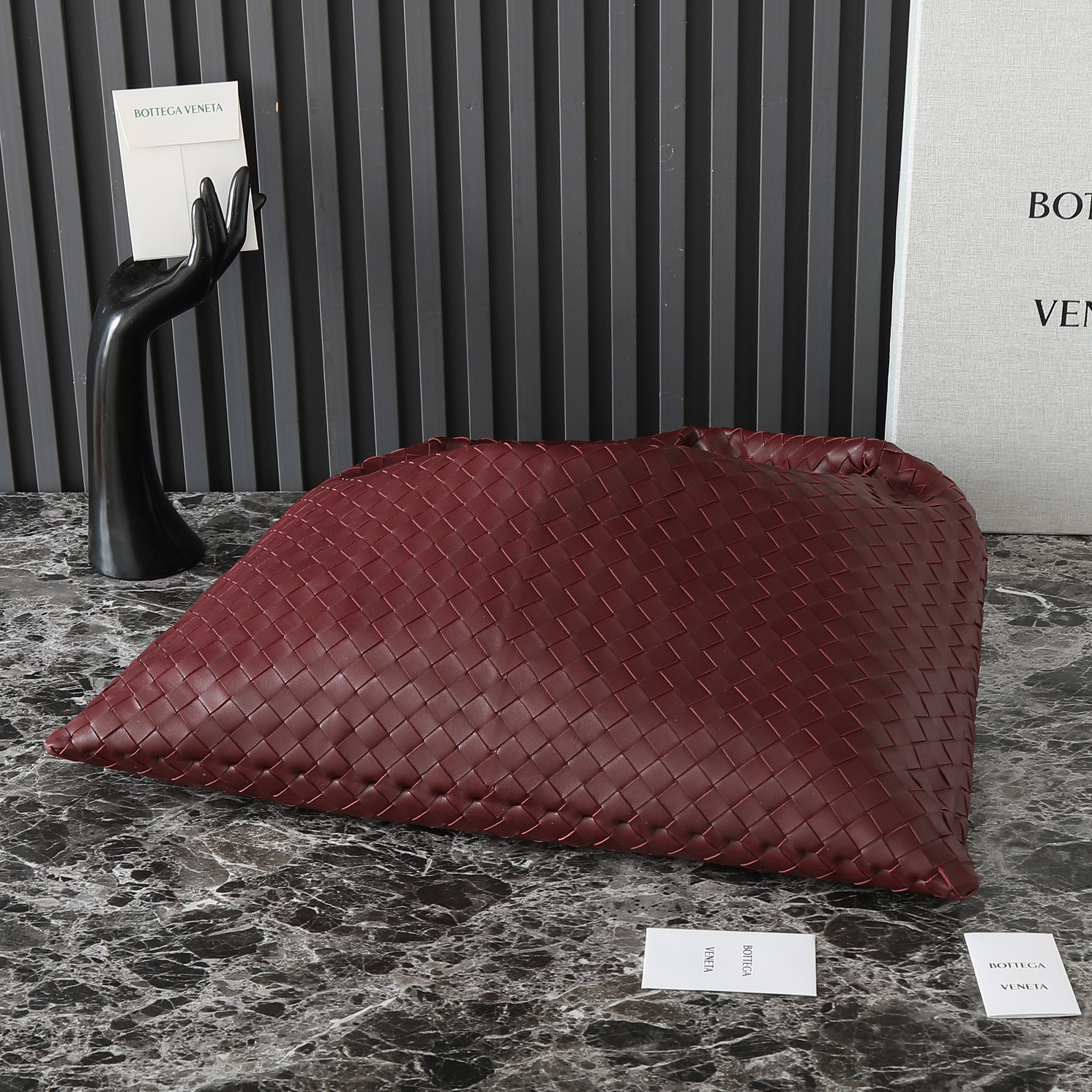 伝統のIntrecciato編みを進化させた3D構造が、光の加減で変化する陰影美を生み出す。