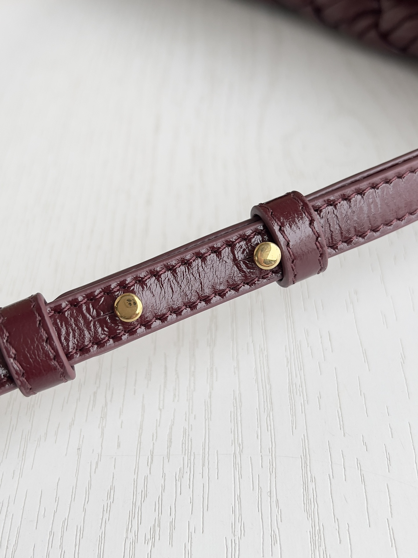 Bottega Venetaの2024年冬季コレクションに登場したKalimero Cha-Chaは、24メートルの牛革を使用したFoulard Intreccio編み技術が特徴です。28.5x15x6cmのコンパクトサイズで、取り外し可能な調整式ストラップにより、ショルダーやハンドバッグとして多様なスタイリングが可能。イタリア工房の職人技が光る立体感のあるプリーツデザインと、しなやかなレザーの質感が洗練された大人の女性らしさを演出します。