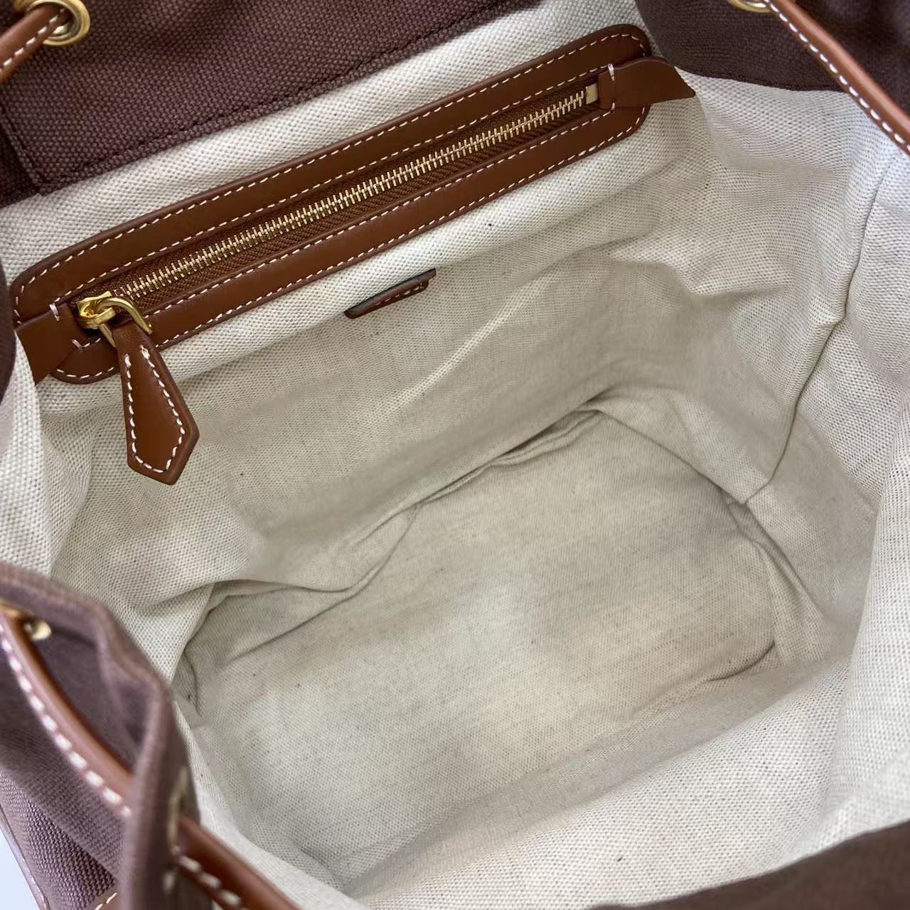 MIU MIUの最新バックパックは、高級キャンバスと輸入子牛皮の組み合わせで、耐久性とスタイリッシュなデザインを両立。厚手のリネンミックス裏地を使用し、複数のポケットを備えた実用的な収納力を提供。ダブルショルダーストラップとハンドル付きで、手さげや背負いの使い分けが可能。カジュアルながら洗練された雰囲気で、日常使いからアウトドアシーンまで幅広く活躍します。