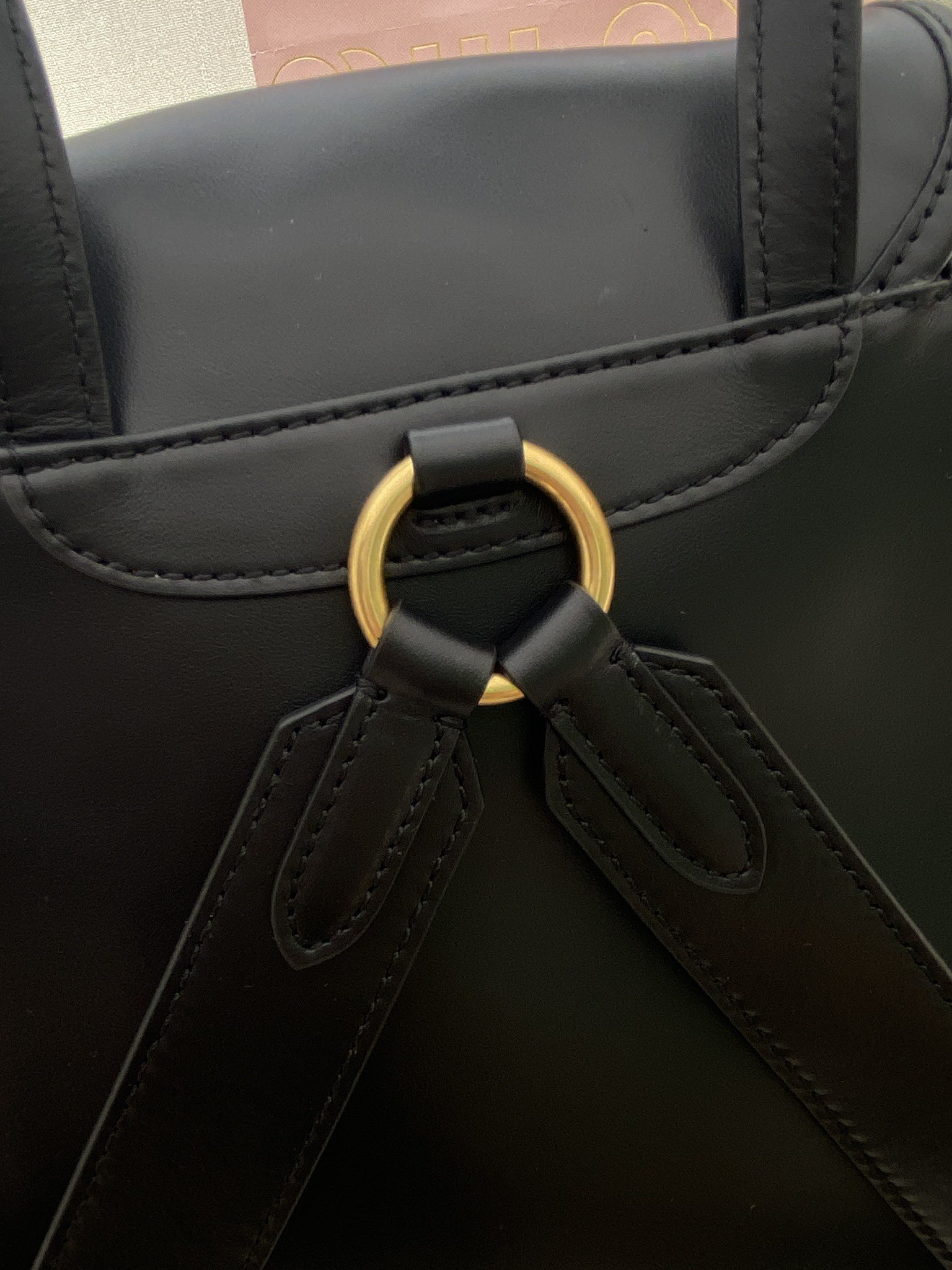ダークブラウンxブラックのツートンカラーが、スーツからデニムまで幅広いコーディネートを演出。金メッキのハードウェアが高級感を強調 -