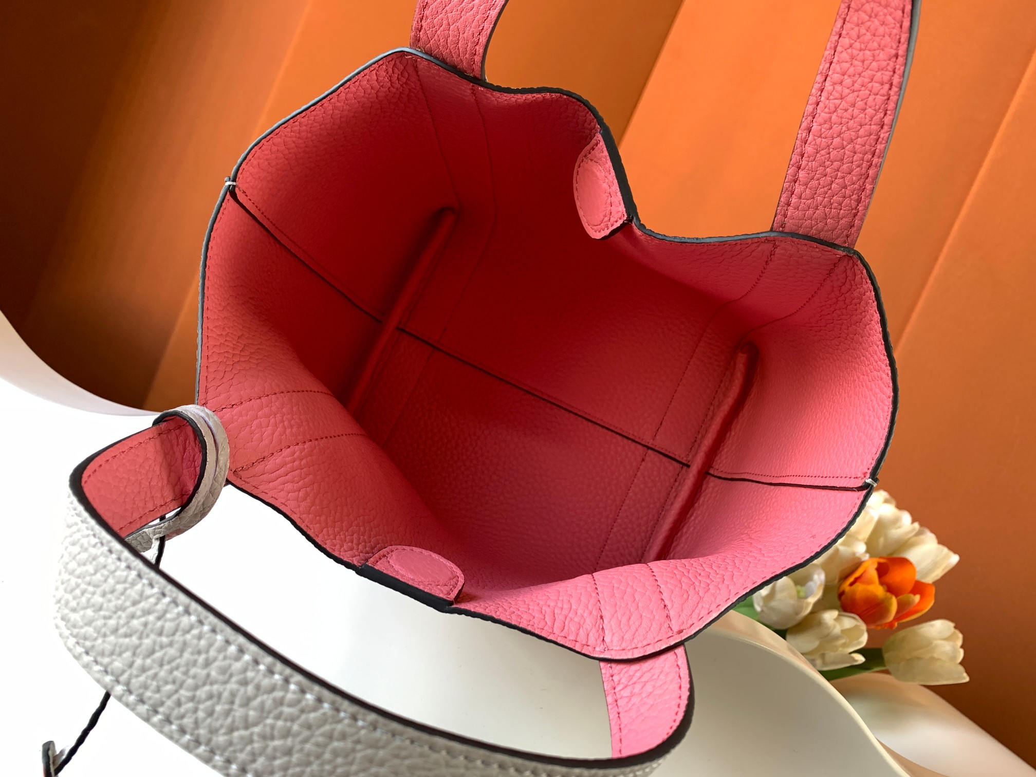 MOYNATの定番Duo Toteをコンパクトサイズにリデザインした2025年春夏新作。マイクロサイズのトートバッグとして、ブランド伝統の高級皮革細工を凝縮。取り外し可能なジップ付きポーチを内蔵し、軽量ながら実用的な収納力を備える。