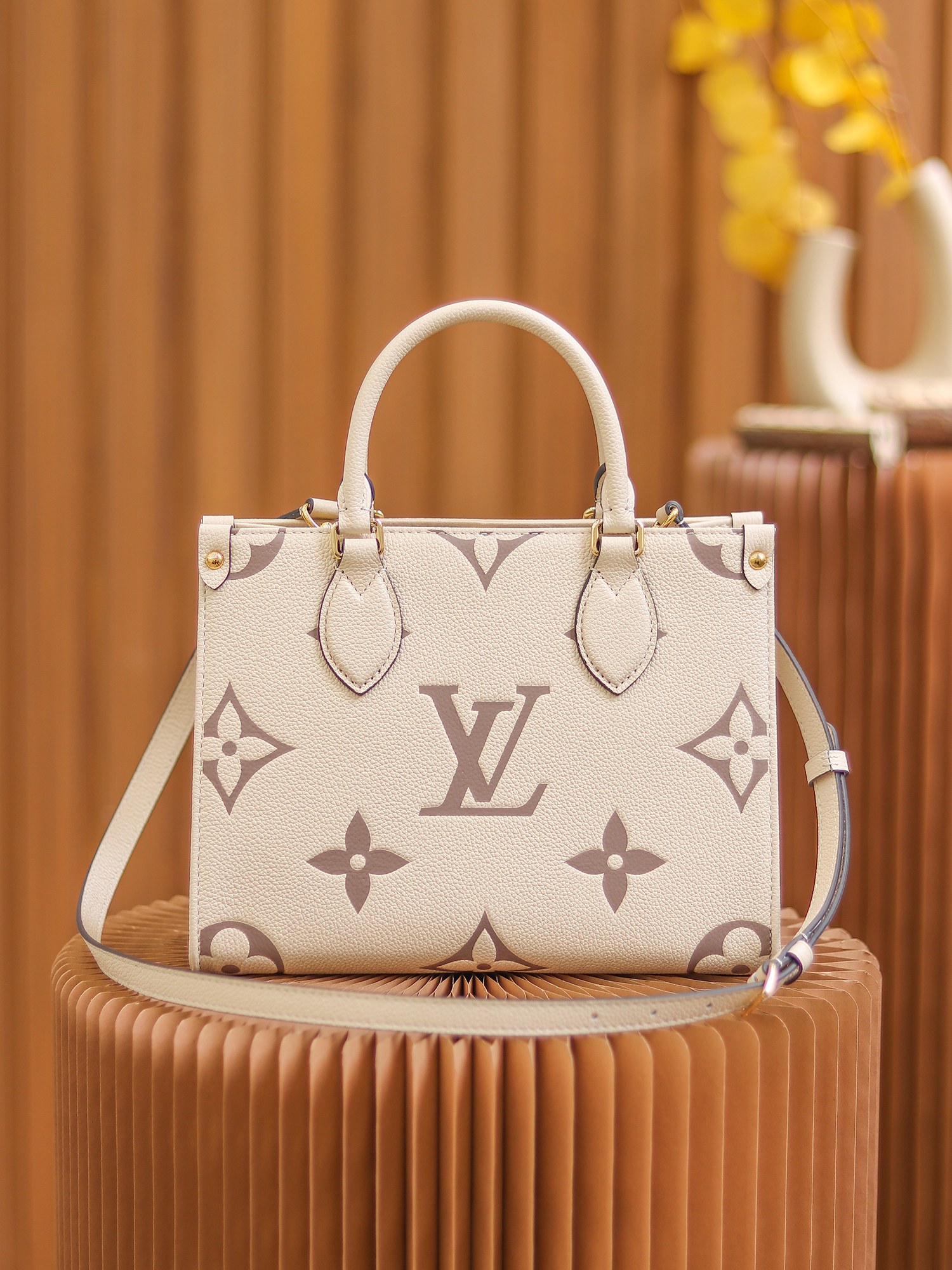 1968年にルイ・ヴィトンが発表した「サック・プラ」から着想を得た「オンザゴー PM」。モノグラム・アンプラント レザーをアップデートし、ミディアムサイズのモノグラム・パターンをバイカラーのエンボス加工で施しました。「オンザゴー」を再解釈したこの小ぶりのバッグは、コンパクトでありながらミニタブレットをはじめとする必需品がしっかりと入る収納力が魅力です。関節式のトップハンドルと取外し & 調節可能なストラップで、さまざまな持ち方を楽しめます。