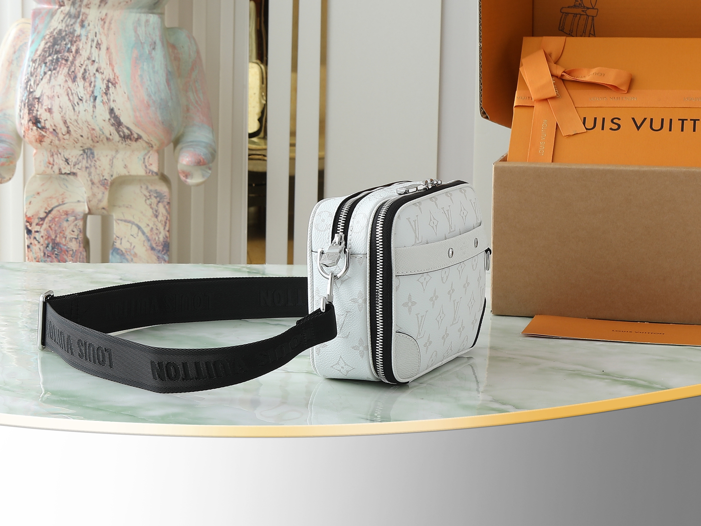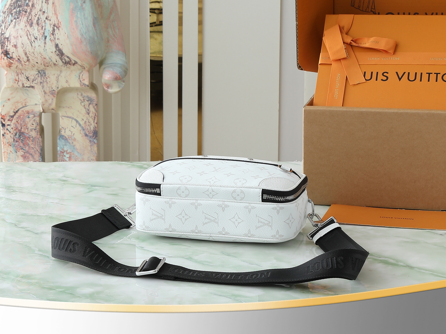 ルイ・ヴィトンの匠のディテール: 牛革のトリミングとメタルハードウェアで、ブランドのクオリティを体現。
