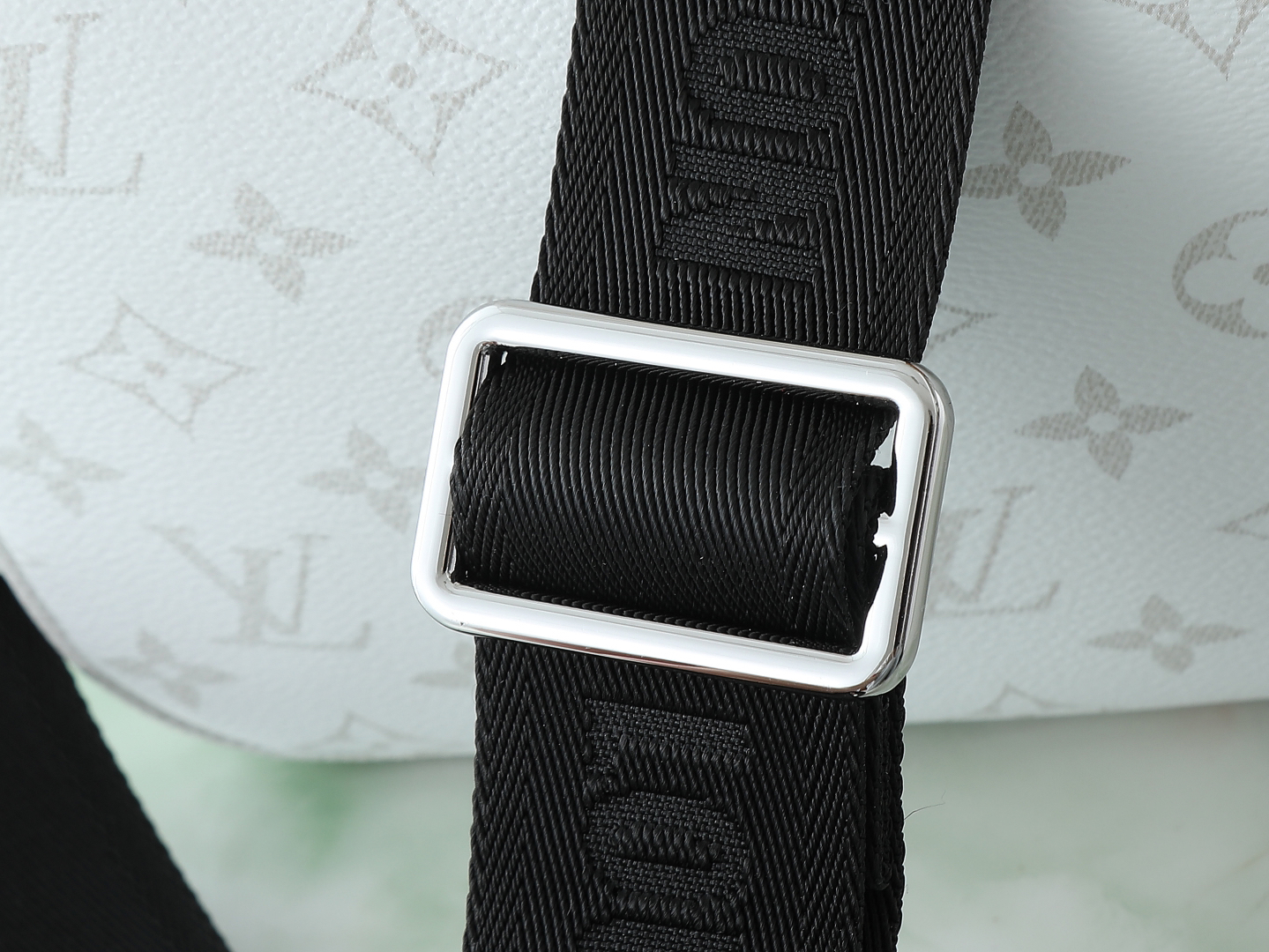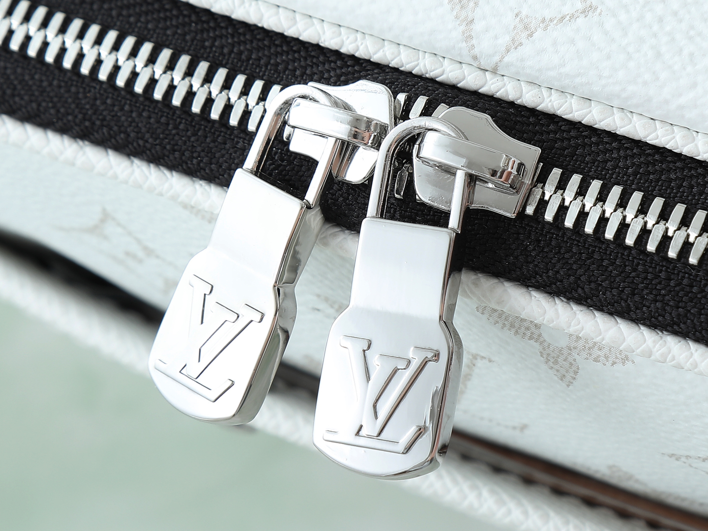 モノグラム エクリプス キャンバス: 耐久性に優れたコーティング加工の帆布で、洗練されたブラック&ホワイトのデザイン。