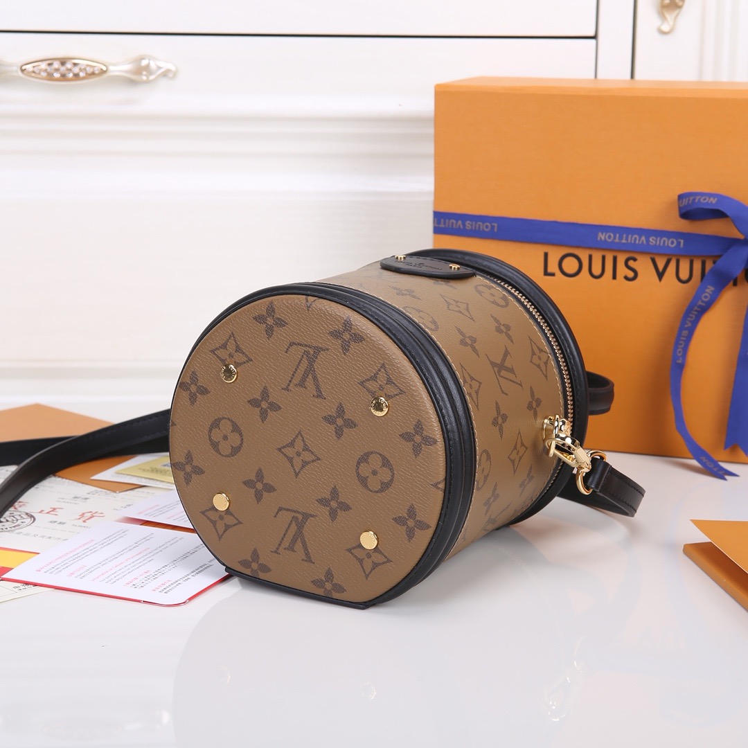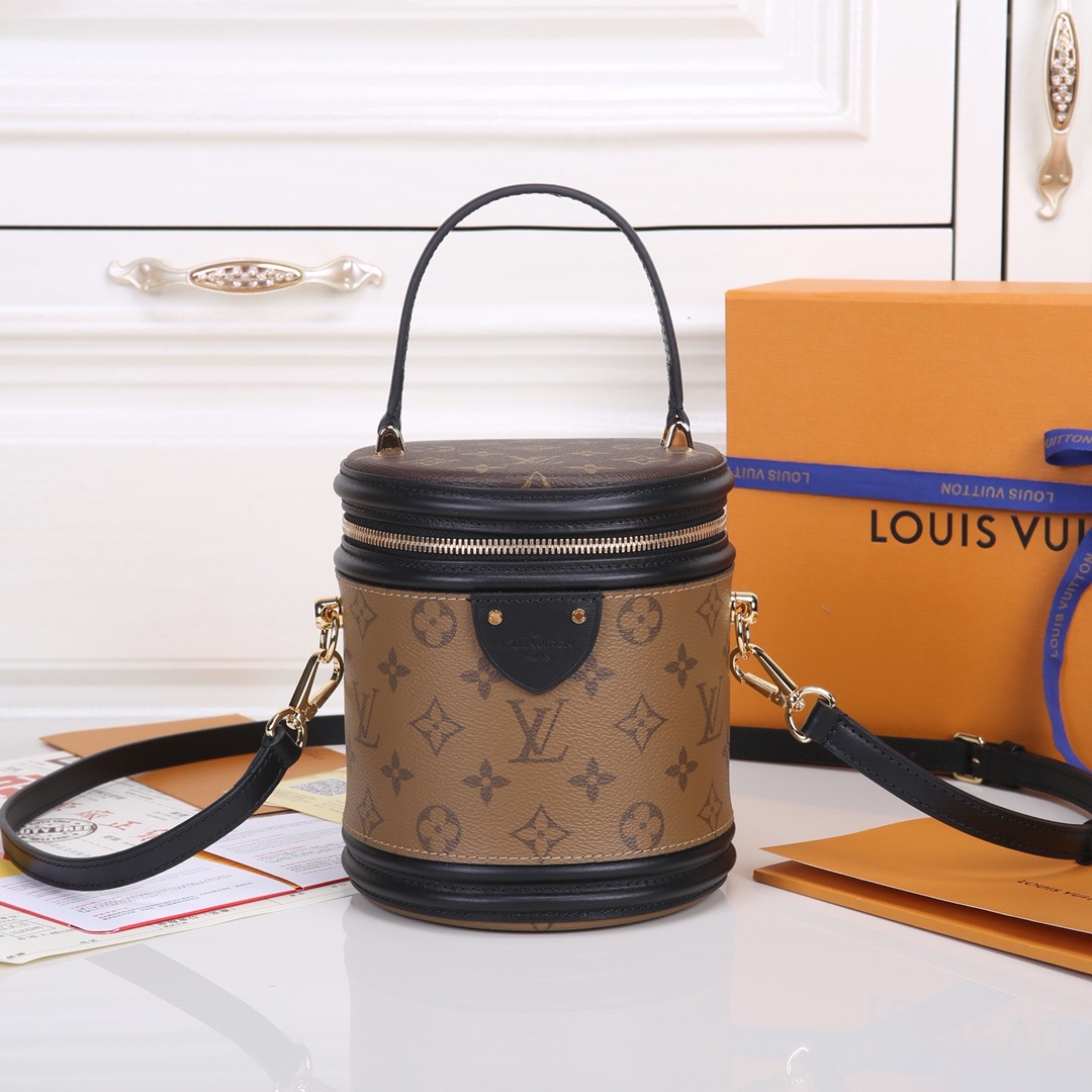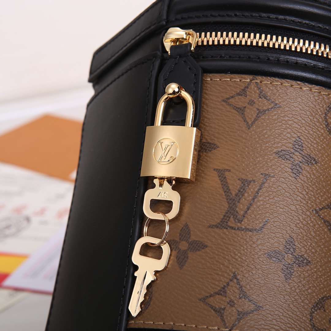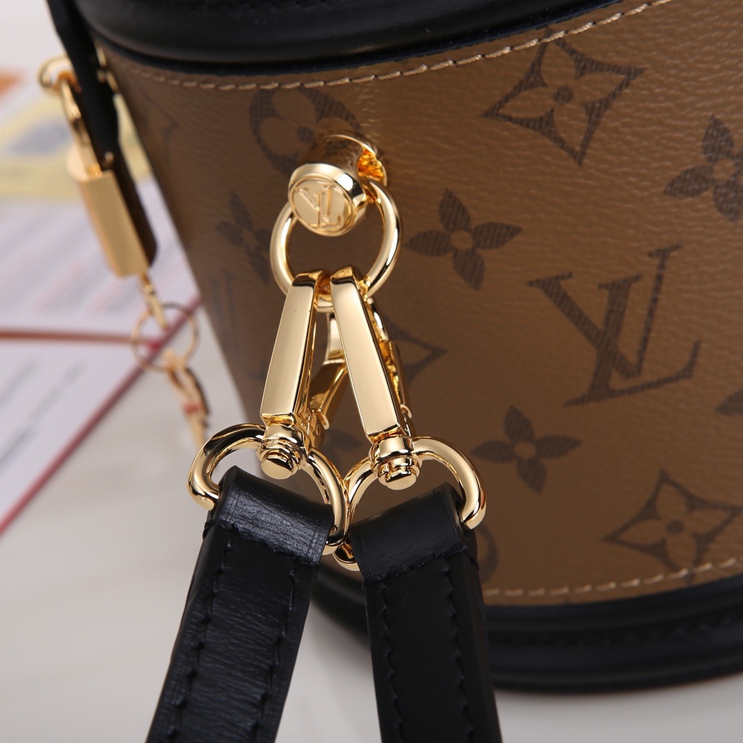 デザイナーのニコラ・ジェスキエールは、LV カンヌ バニティケースの古代の形にインスピレーションを得て、長い歴史を持つクラシックなバッグとして生まれ変わったカンヌ ハンドバッグを制作しました。コンパクトなサイズで、モノグラムとモノグラム リバースのコーティングキャンバスを組み合わせたこのエレガントなデザインは、ルイ・ヴィトンの伝統に深く根ざしたスタイルに新鮮な新しい外観をもたらします。バッグには取り外し可能なレザーショルダーストラップとトップハンドルが付いており、さまざまな持ち運び方法が可能です。