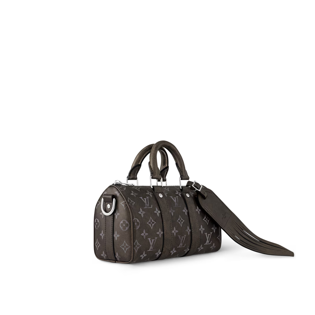 ブラッシュドモノグラム カウハイドレザーで仕上げたキーポルバンドリエール 25。プロのカウボーイの使い古したようなレザーサドルを彷彿させる、色褪せたモノグラムパターンが特徴です。2024秋冬コレクションでファレルウィリアムスが掲げたパリからバージニアへのテーマにふさわしく、装飾的なロングフリンジを添えた独特のレザーのネームタグをあしらいました。