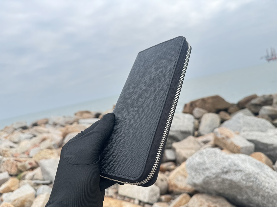 タイガ・レザーで仕立て、シルバーカラーのメタルパーツをあしらった「ジッピーウォレット・ホリゾンタル」。伝統的な「ジッピーウォレット・ヴェルティカル」を再解釈しより機能的な横型にアップデートしました。ラウンドファスナー開閉式の実用的なデザインに、ファスナー付きポケットを中央に配したメインコンパートメントと各サイドに6つずつ並べたカードスロット、紙幣や領収書用の2つのフラットポケットを備えています。