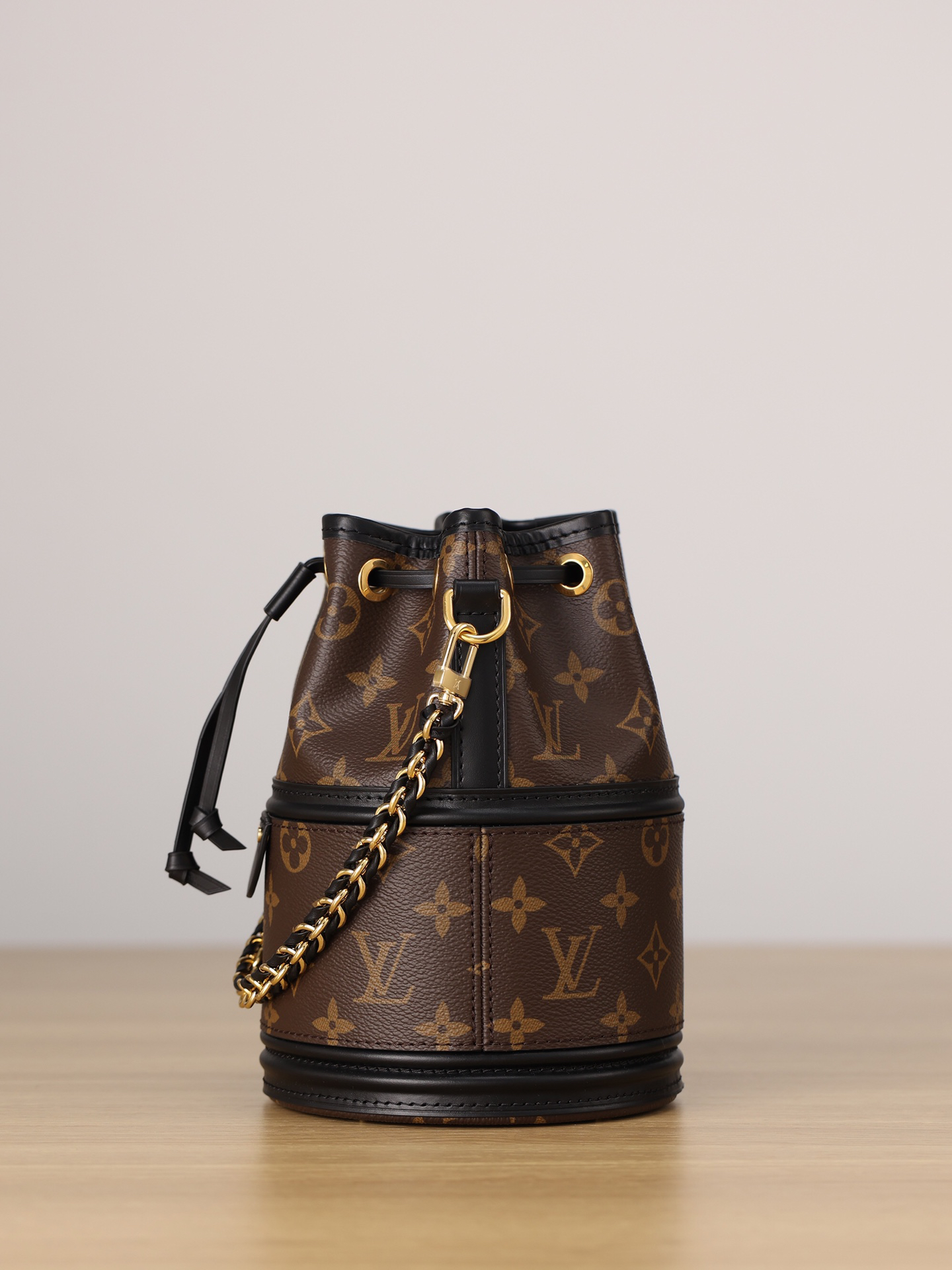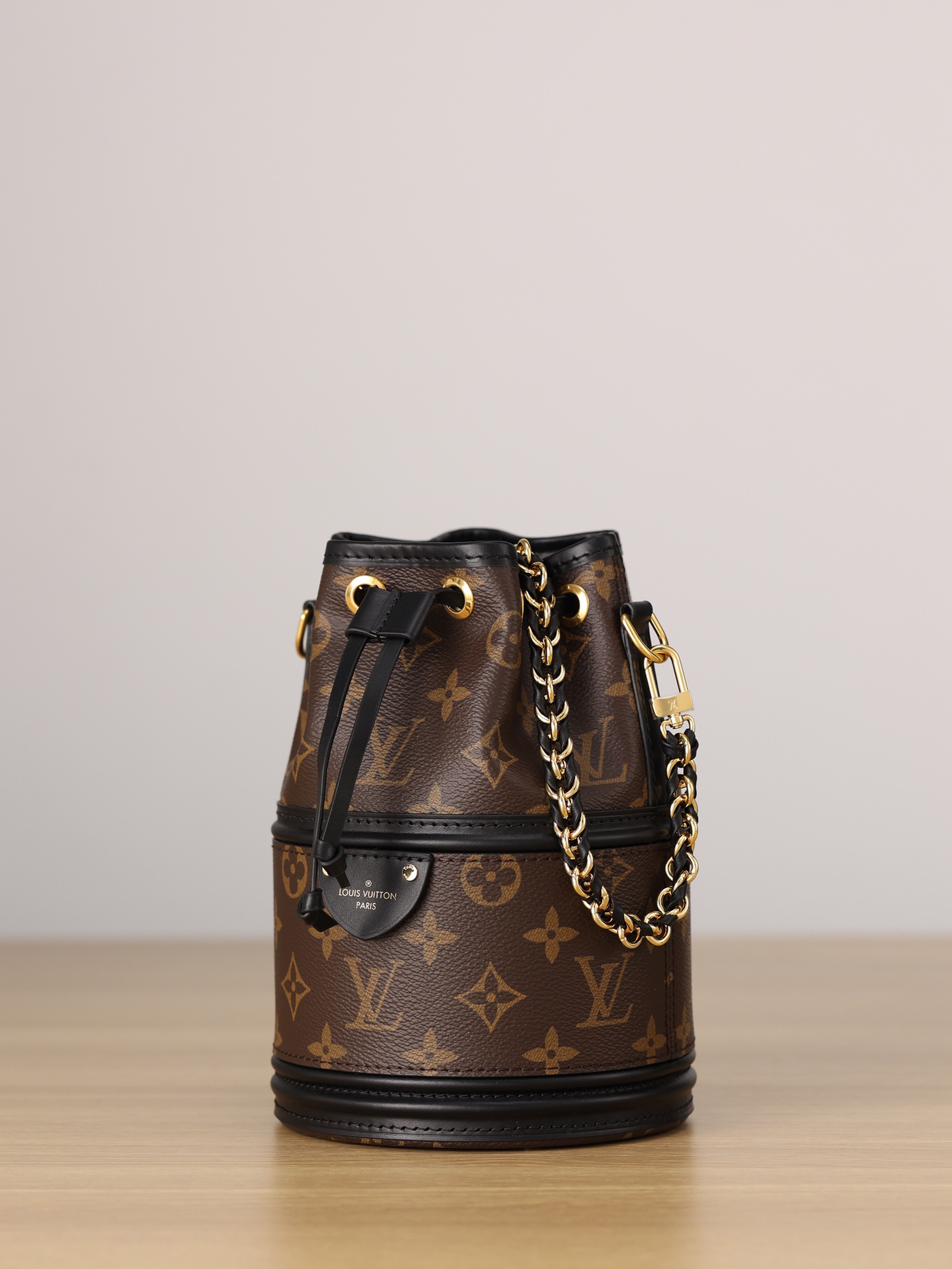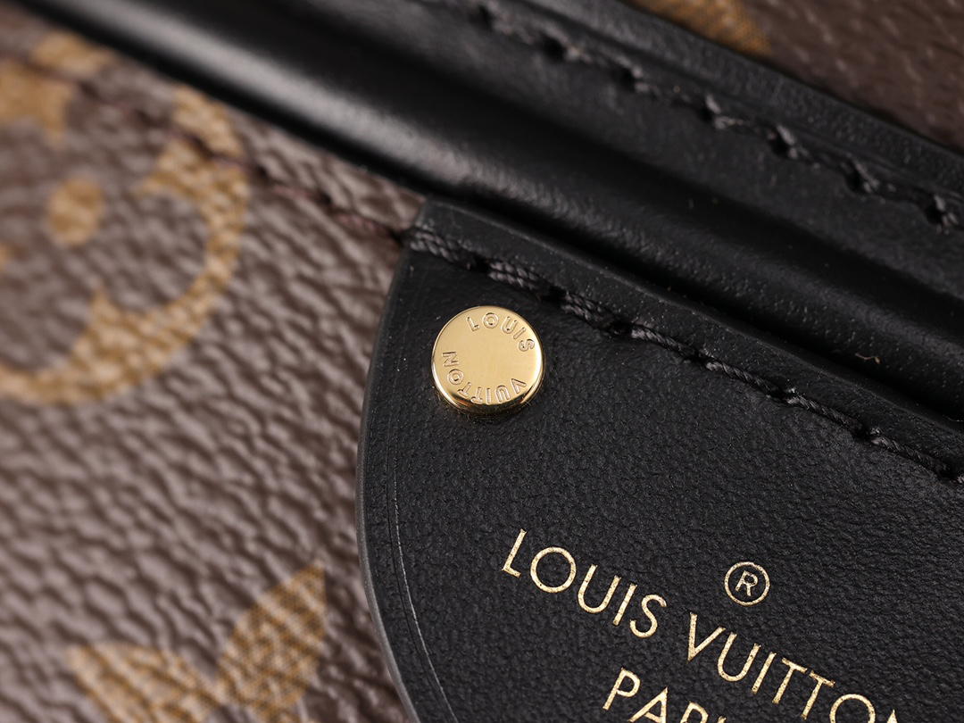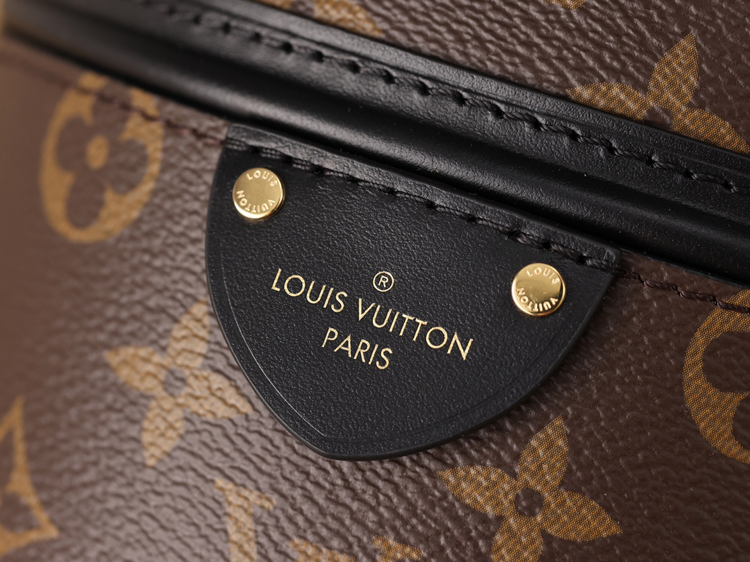 LVロゴが刻まれたメタルチャームと、底部の保護金具が機能美を演出。