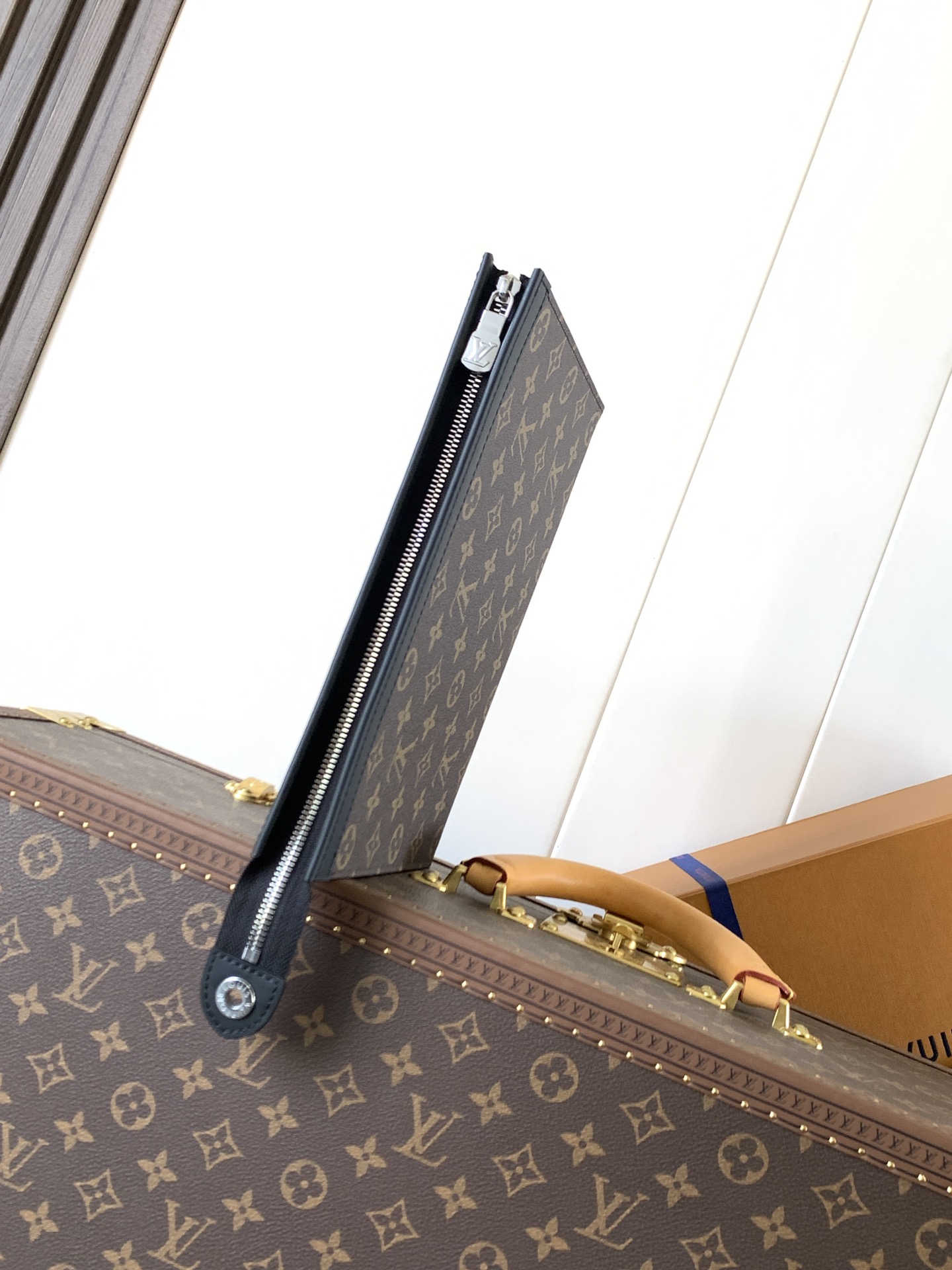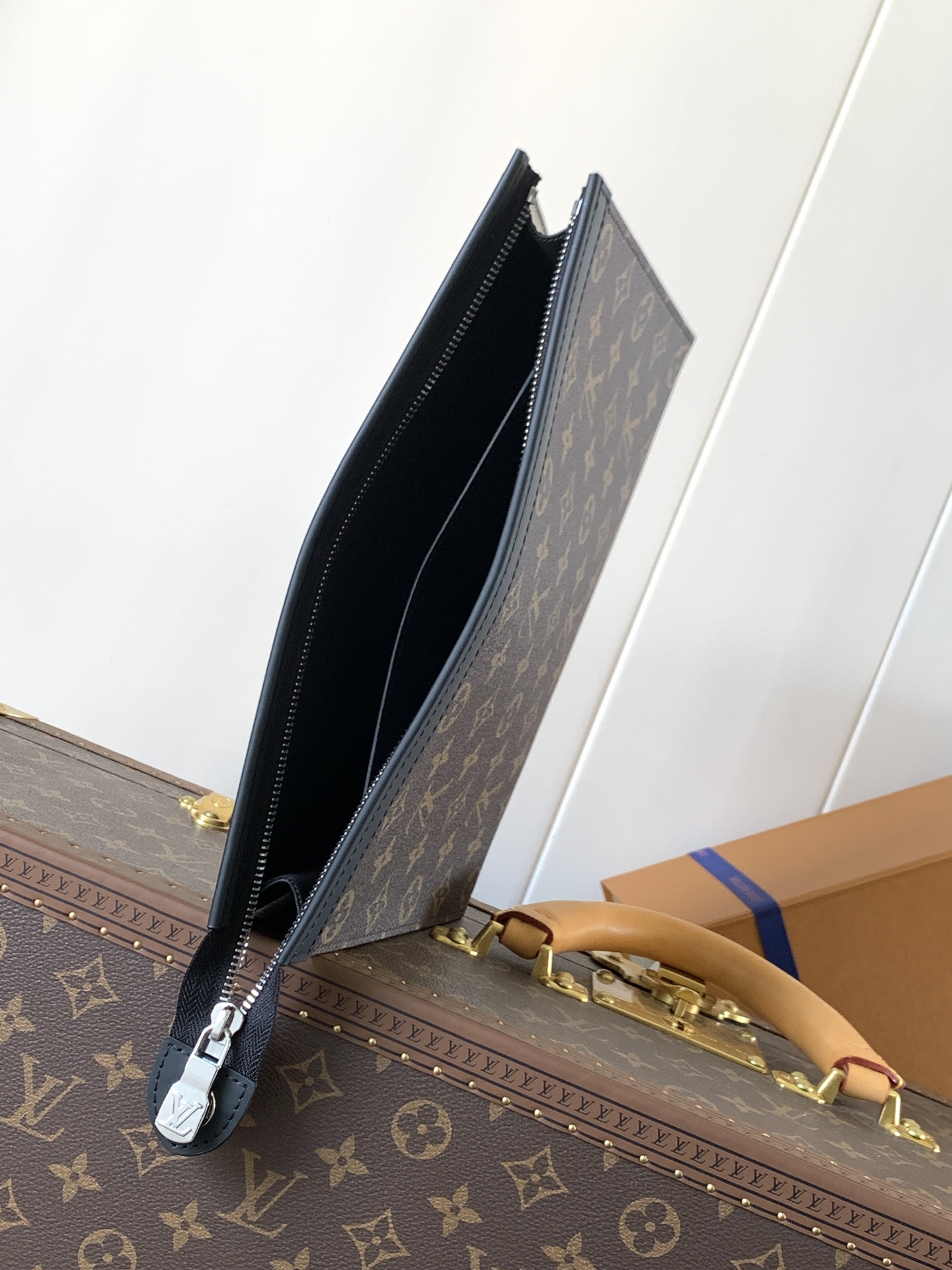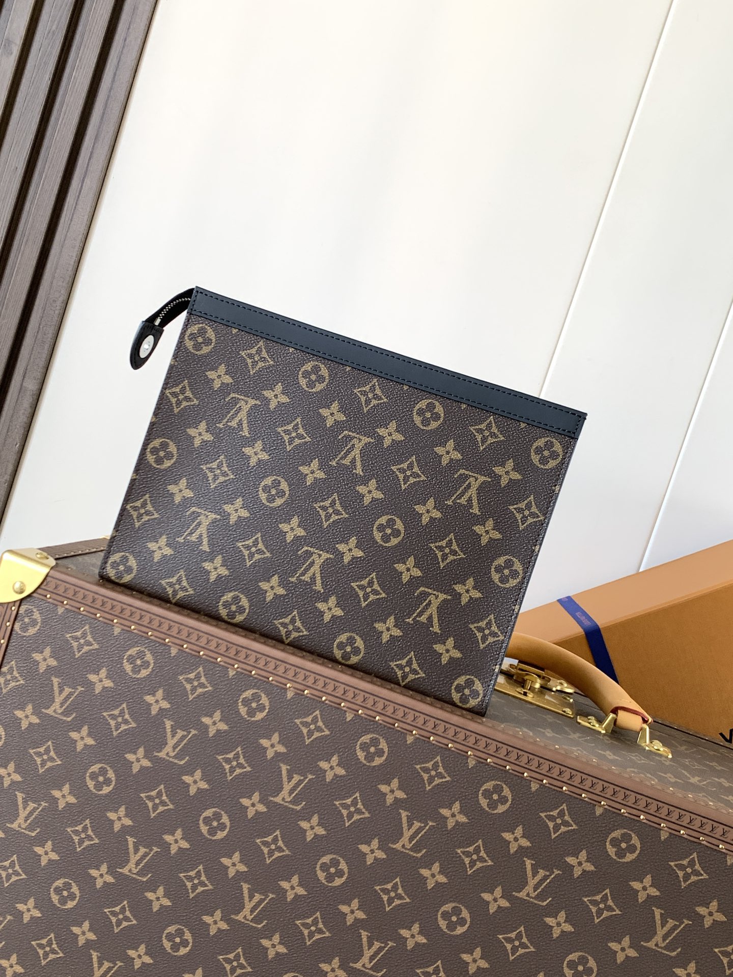 モノグラム・エクリプス キャンバスに鮮やかな色合いのレザートリミングを施し、スポーティな印象に仕上げた「ポシェット・ヴォワヤージュ MM」。小さめのクラッチとして持つことはもちろん、トラベルバッグの中身の整理にも使える実用的なポーチです。内装には6つのカードスロットとフラットポケット付き。