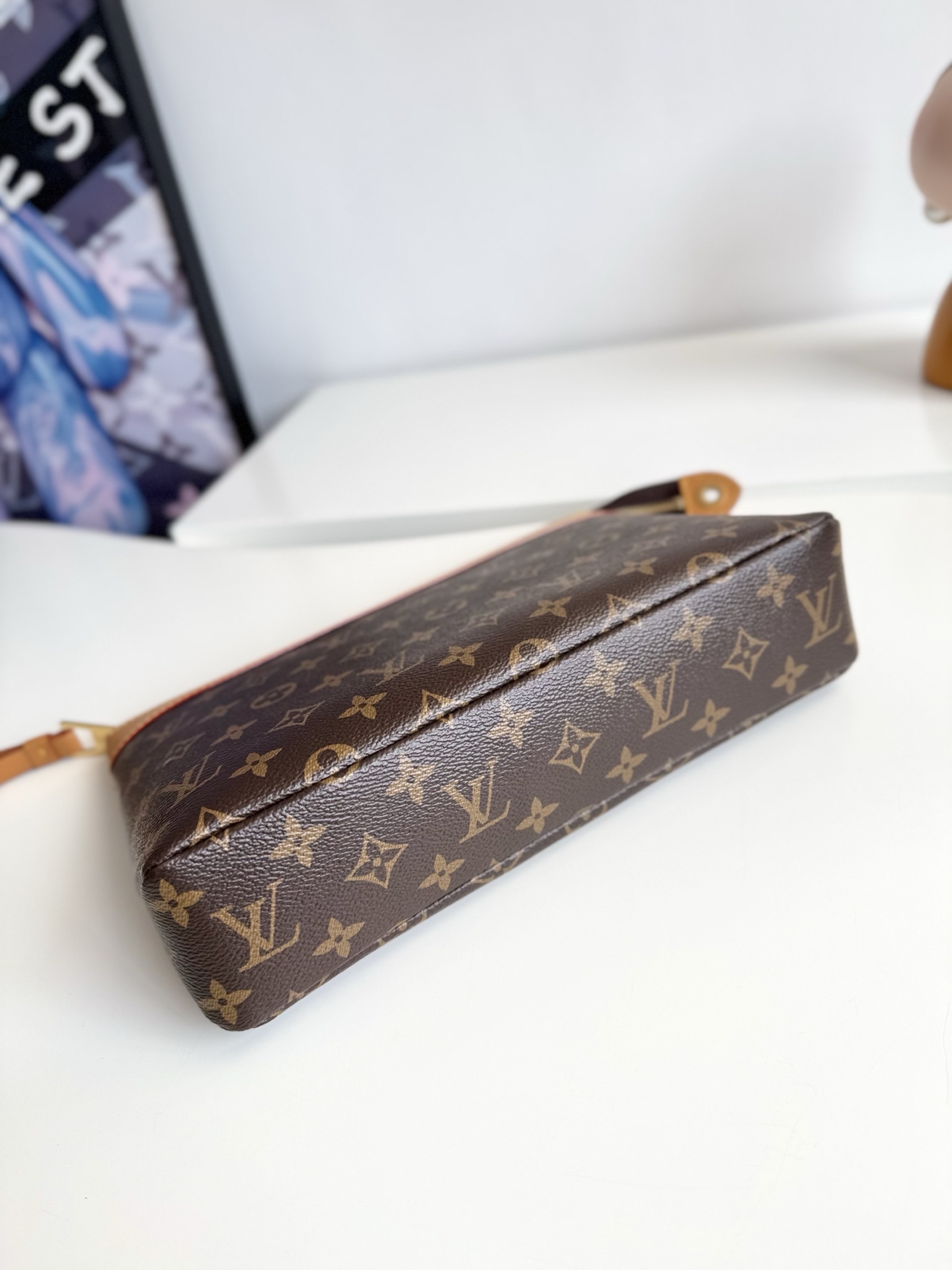 アンティーク調のヌメ革のトリミングを施したモノグラム・キャンバスが落ち着いた雰囲気を醸し、柔らかなラインを描く「ポシェット・ヴォワヤージュ スープル」。クラシックなエレガンスと現代的なスタイルが見事に調和したアイテムは、クラッチとして持ち運ぶのにも、大きめのバッグに入れて小物類を整理するのにも最適です。