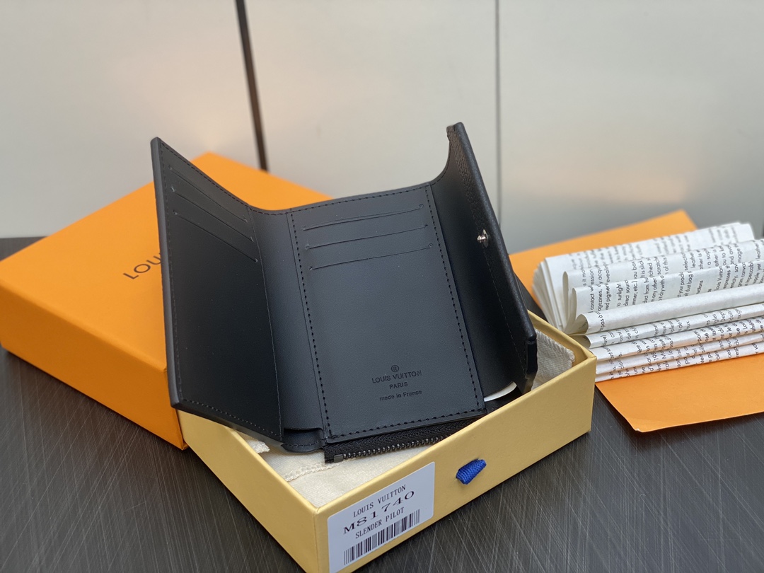 ルイ・ヴィトンの旅の伝統から着想を得た「アエログラム」ラインの1つ「ポルトフォイユ・パイロット」。レトロな航空書簡を想わせるこの上なくしなやかなカウハイドレザーで仕立てたアイテムには、斜めにカッティングしたフラップのコーナーとブラックメタルの控えめなLV イニシャルが添えられ、航空書簡の雰囲気をさらに引き立てます。ポケットや、「アエログラム」コレクションの大ぶりのバッグにすっきり収まる、大容量かつコンパクトなデザインです。