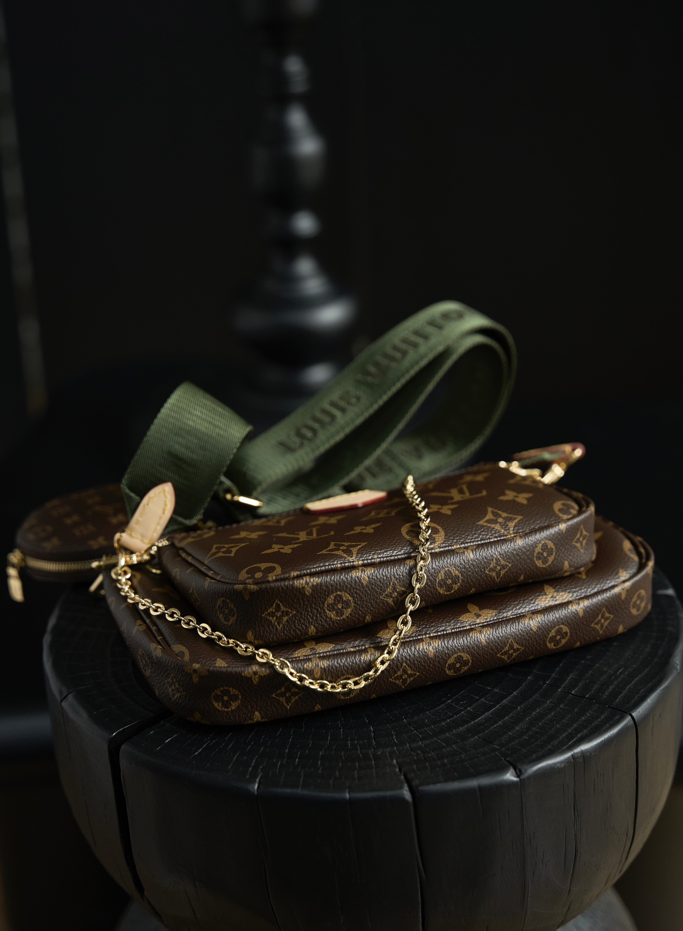 モノグラムエクリプスキャンバスとブラックレザーを組み合わせた多機能アクセサリーポーチ(縦16.0x横20.0xマチ5.0cm)。コンパクトなシルエットに複数ポケット(メインジップ・フロントスナップ・内側クレジットスロット)を配置。アジャスタブルショルダーストラップ(最長50cm)付きでハンド/ショルダーの2WAY使用可能。軽量設計(約450g)かつ耐摩耗性に優れた日常使い向けアイテム。