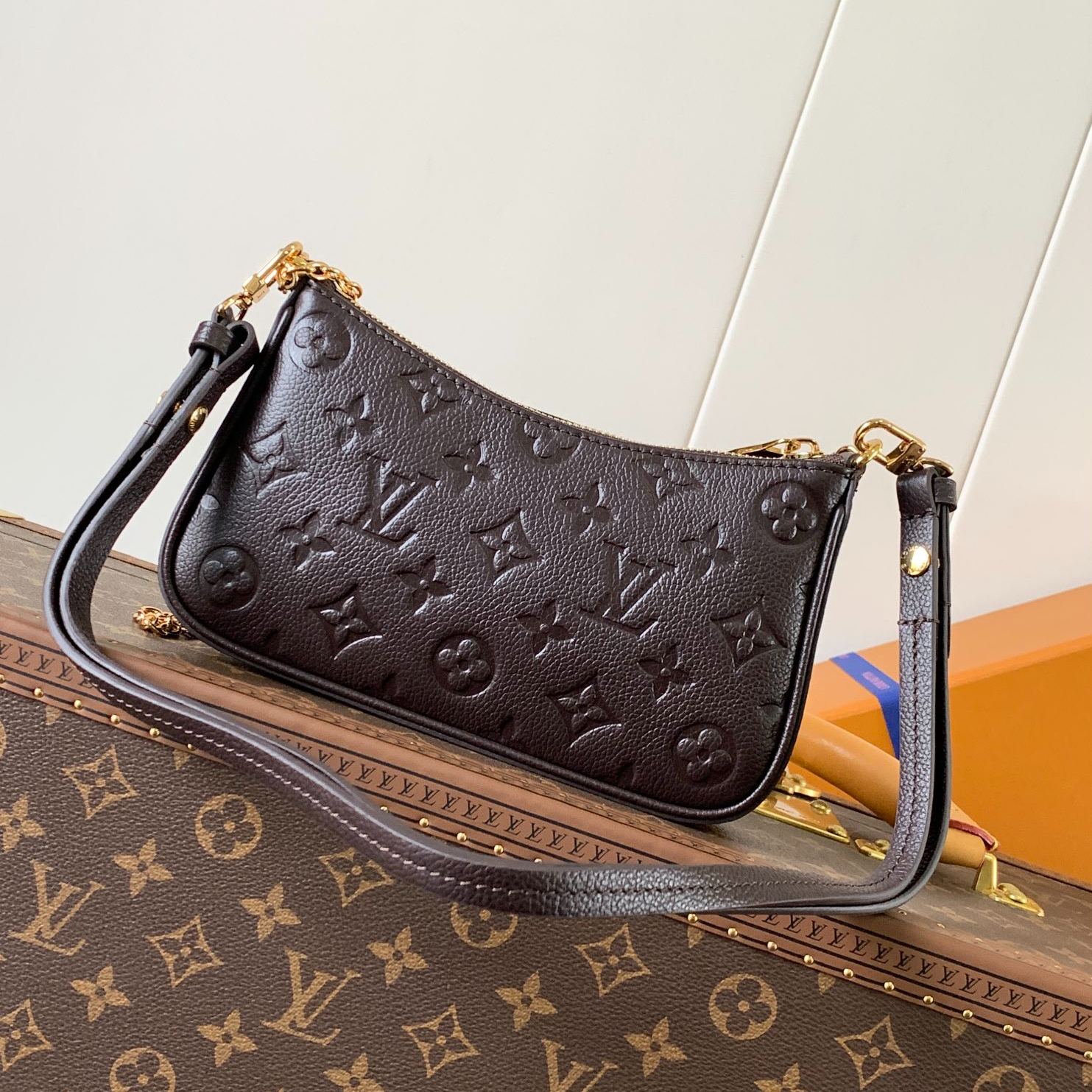 EASY POUCH ハンドバッグは、コンパクトながら実用的なデザインが特徴のアイテム12。11.5x3x19cmのサイズで、スマートフォンや小型財布、鍵などの日常必需品を収納可能。チョコレートカラーのMonogram Empreinte皮革を使用し、上品な質感と柔らかな触り心地を実現。D型リング付きでチャームやキーホルダーの装着も可能。