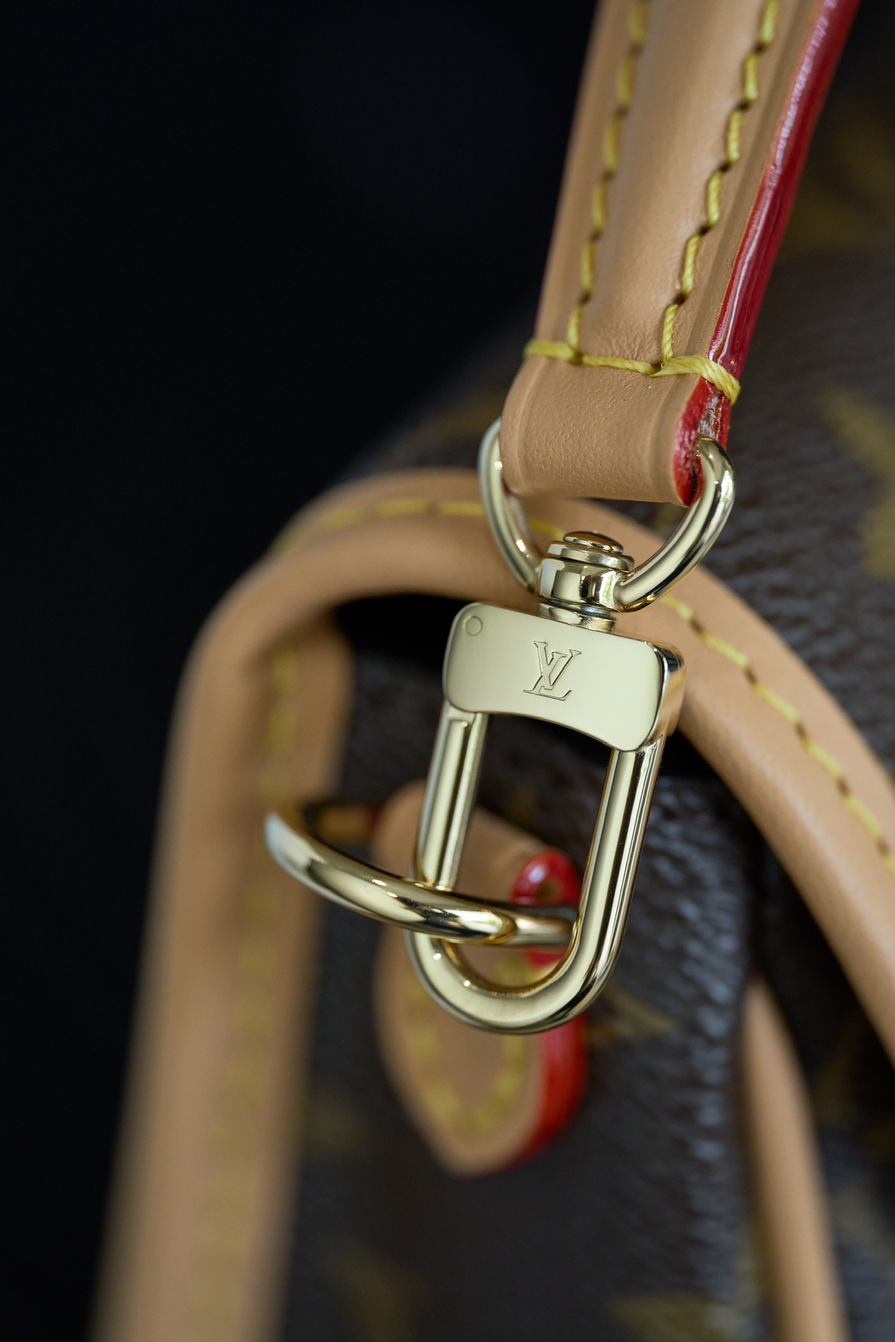 金メッキLVロゴチャームと赤内装で高級感のあるアクセントを追加。