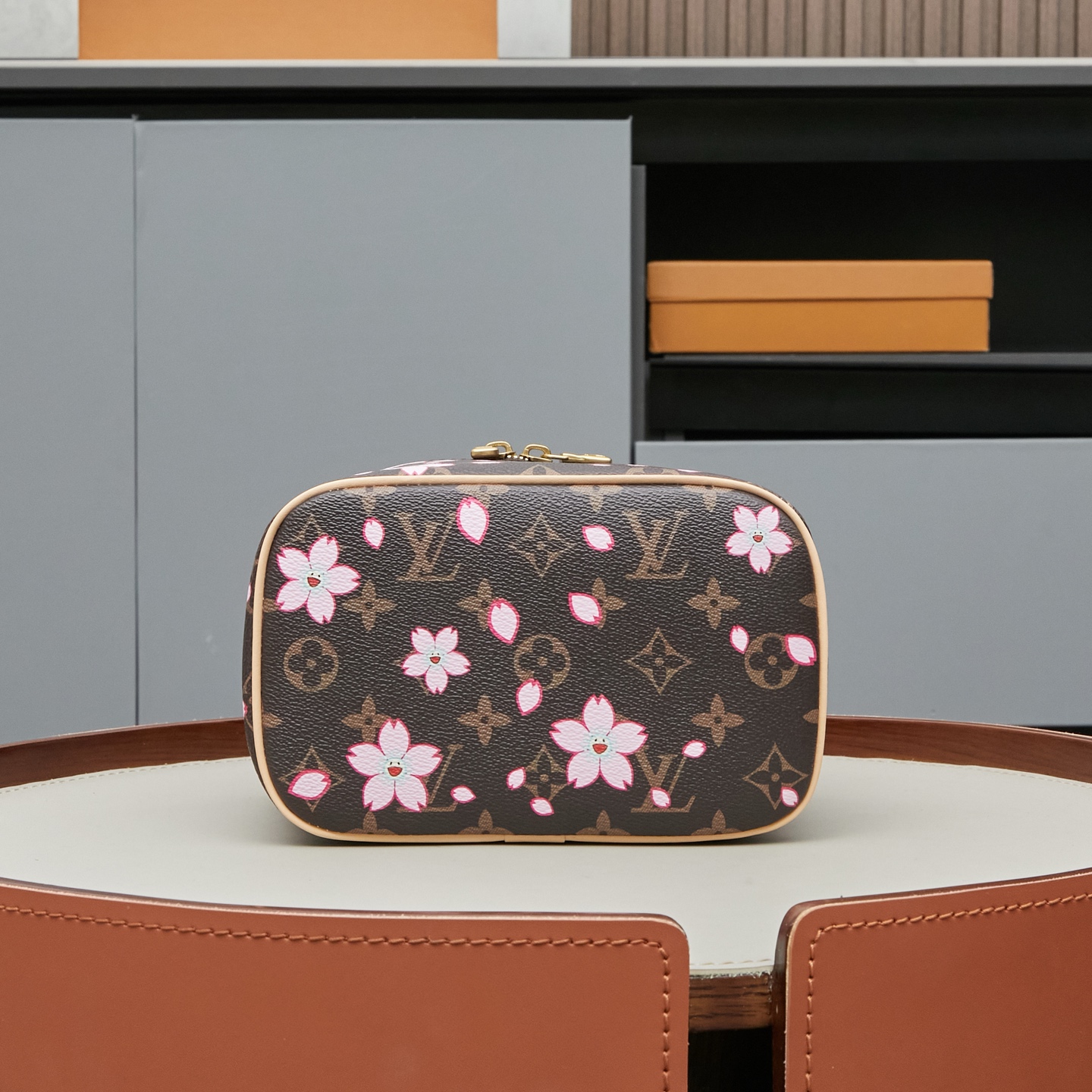 「Nice Mini」はモノグラムリバースキャンバスを使用したコンパクトなバニティケース。12×8.5x5cmのミニサイズながら、取り外し可能な50cmチェーンストラップを備え、クロスボディスタイルにも対応。メインコンパートメントには透明PVC素材の収納ポケットを配置し、リップクリームやコンタクトレンズケースなどの小物を衛生的に収納可能。内側にはLVロゴが刻印されたミラーを装備し、外出先でのメイクチェックにも最適なデザインです。