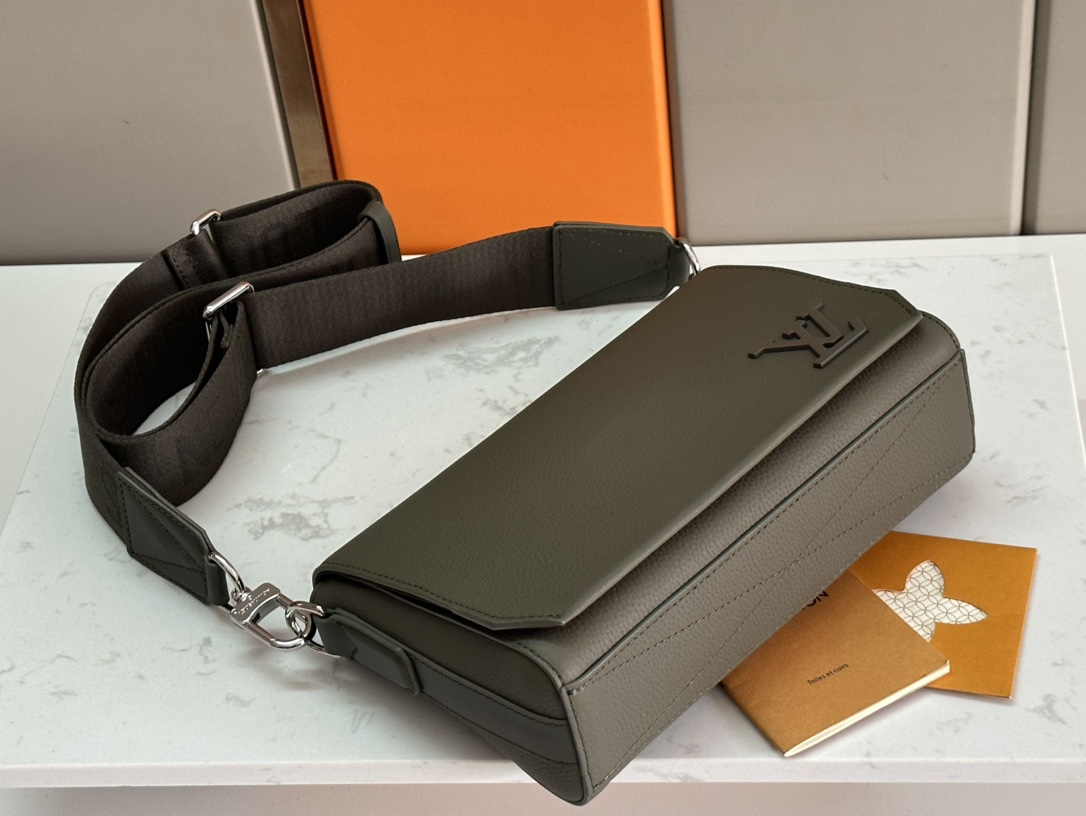 Aerogram JM ショルダーバッグは、なめらかな牛革を使用し、鈍角のフラップとシグネチャーなデザインでAerogramシリーズの特徴を継承。コンパクトながら実用的なサイズ(22 x 16.5 x 7 cm)で、スマートフォンや日常の小物を収納可能。着脱可能なワイドショルダーストラップを備え、ハンドバッグやショルダーバッグとして自由にスタイリング可能。洗練されたシルエットと機能性を兼ね備え、都会のライフスタイルに最適なアイテムです。