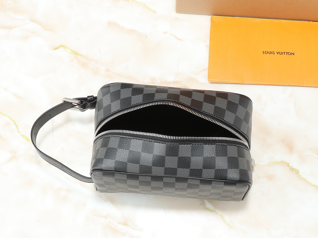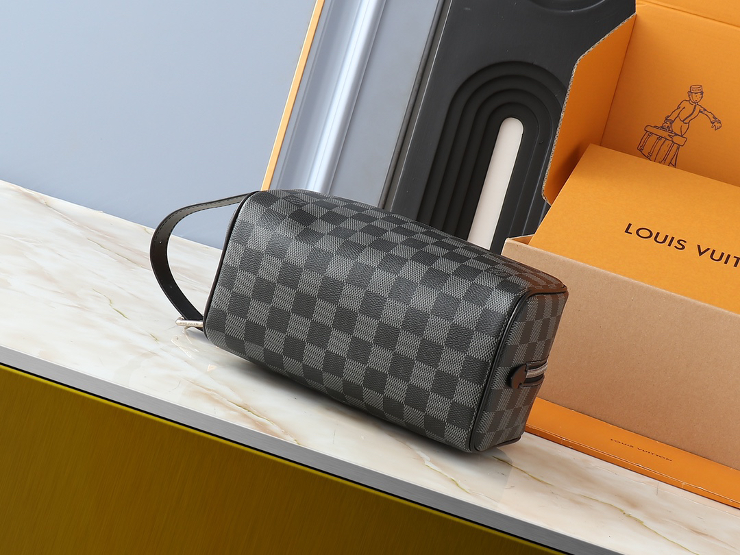 ルイ・ヴィトンのコンコンパクトなトイレタリーバッグ。13x12x23cmの携帯サイズながら、中央ジップ開閉式のメインコンパートメントと内ポケットで効率的な収納を実現。Pharrell WilliamsコラボレーションンモデルではMonogram Dust帆布とアンティーク風牛皮革トリムを採用。洗えるファブリックライニングと調節可能なストラップが利便性を高めます。シックなメタルハードウェアに刻まれたMarque L.Vuitton Déposéeロゴが洗練されたディテールに。