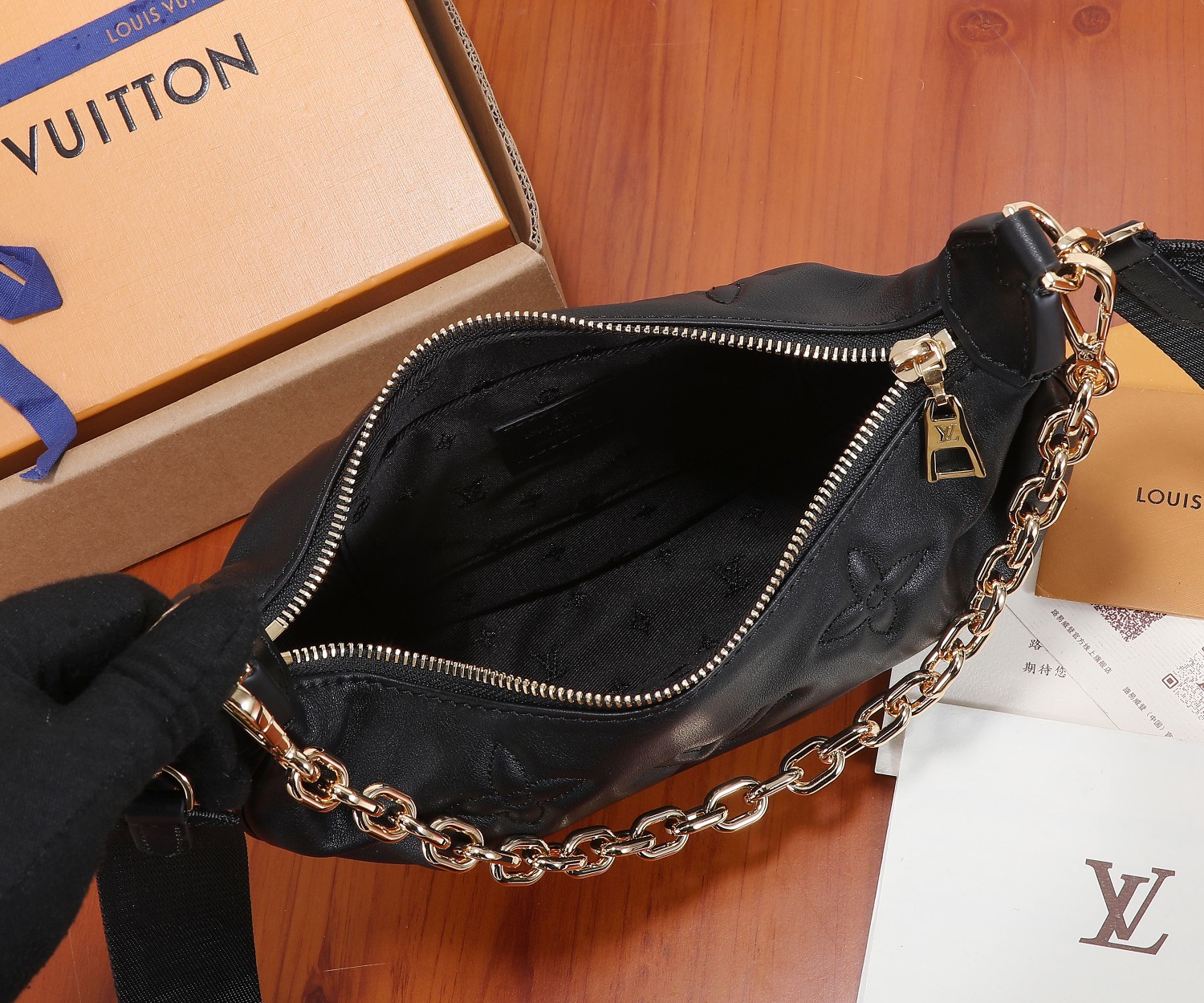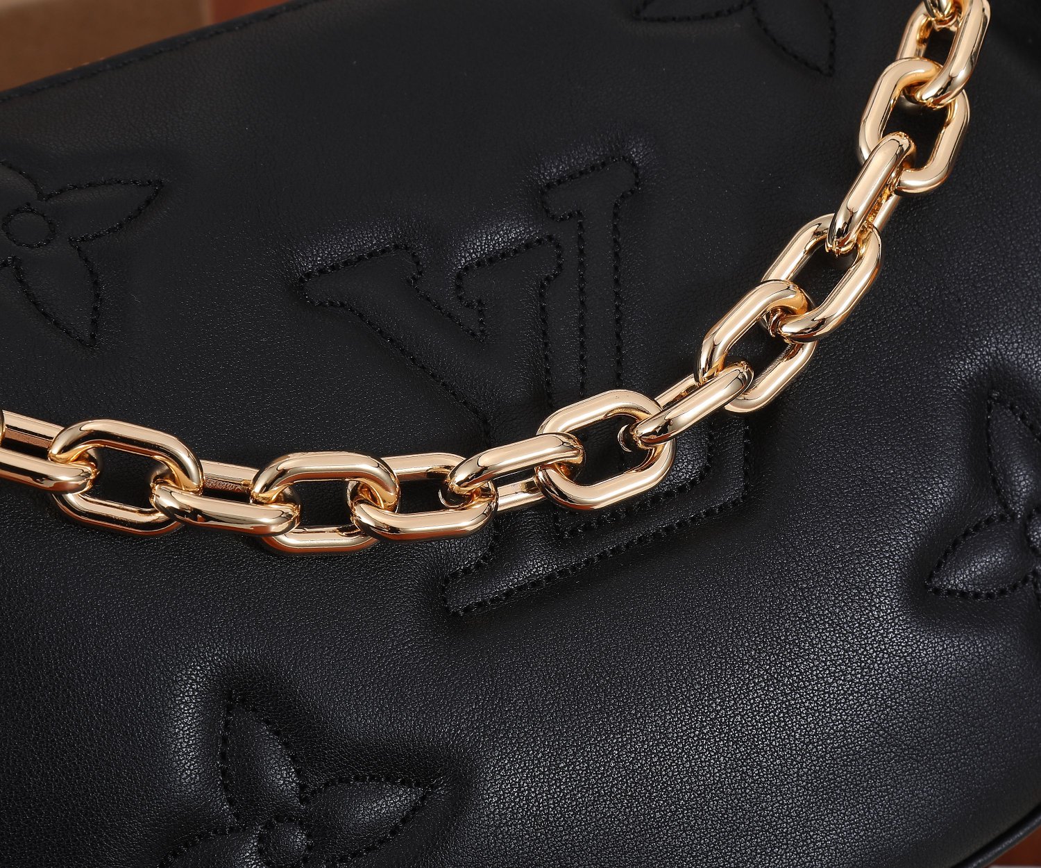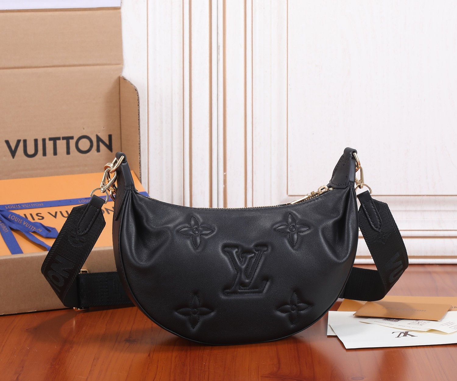 キルティング加工を施したカーフレザーをさまざまなスタイルに合わせてお楽しみいただけるシェイプに仕上げた「オーバー ザ ムーン」。パフ感溢れるモノグラムパターンの刺繍が際立つアイテムは、調節可能なストラップとゴールドカラーのチェーンで、肘に掛けたり、短めや長めのショルダーバッグやクロスボディバッグとしてなど、さまざまな持ち方をお楽しみいただけます。ストラップを外せば、イブニングシーンにぴったりのクラッチバッグにも。