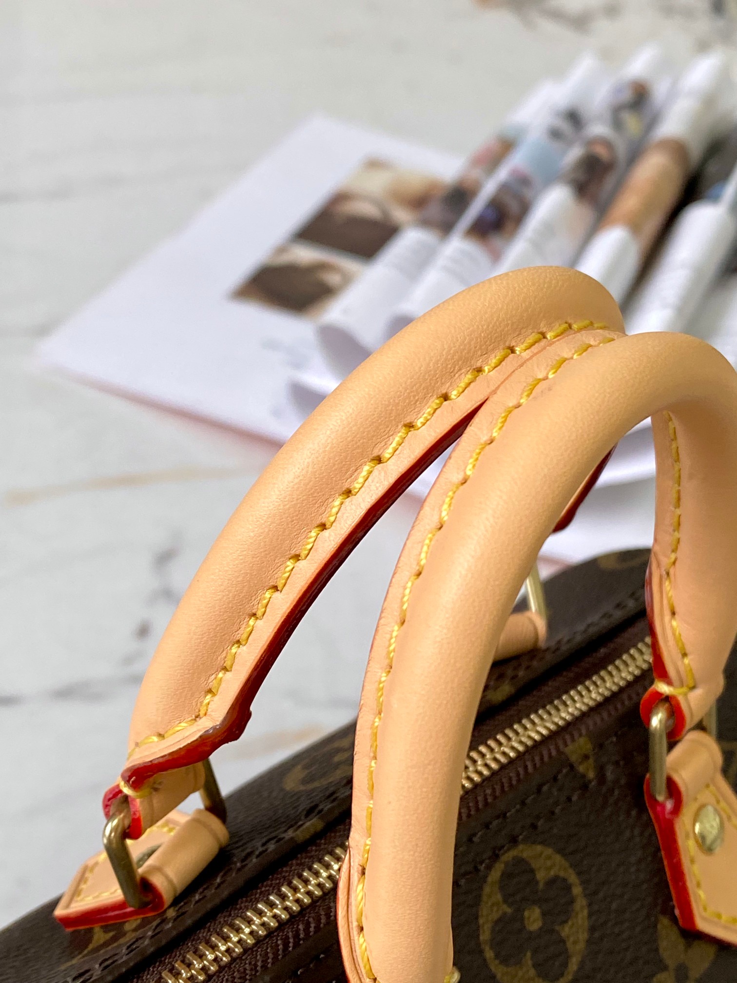 - 耐久性のある素材:耐久性に優れた Monogram コーテッドキャンバスと天然牛革のトリムが使用されています。