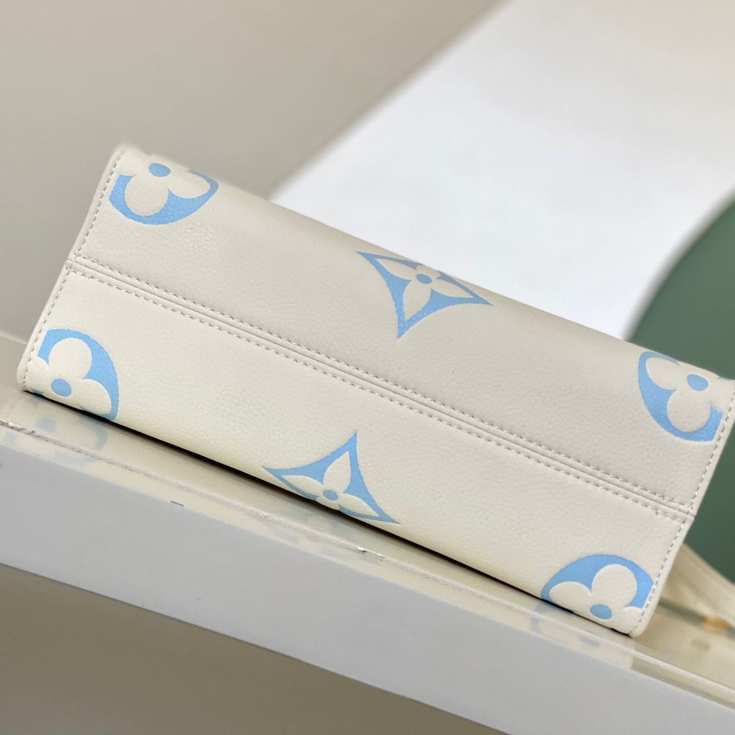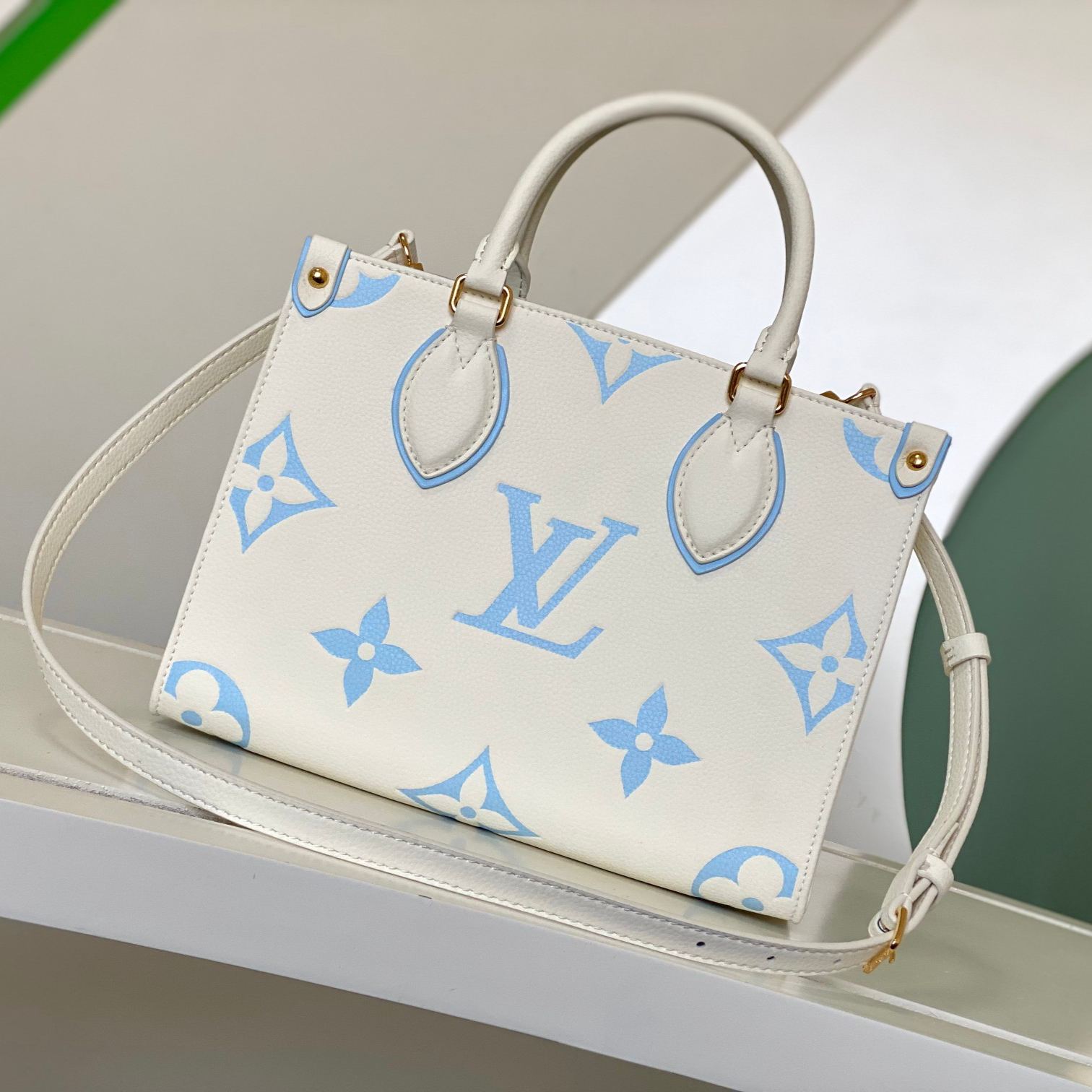 ルイ・ヴィトンの「OnTheGo」シリーズより、19×11.5x25cmのコンコンパクトサイズで登場した小号モデル。モノグラムとモノグラムリバースのコートキャンバスを組み合わせ、トロン柄ハンドルと着脱可能なショルダーストラップ(調節可能35-53cm)により、手提げ/斜め掛けの2WAYスタイルが可能。軽量ながらiPad Miniなどの収納にも対応した実用性が特徴。