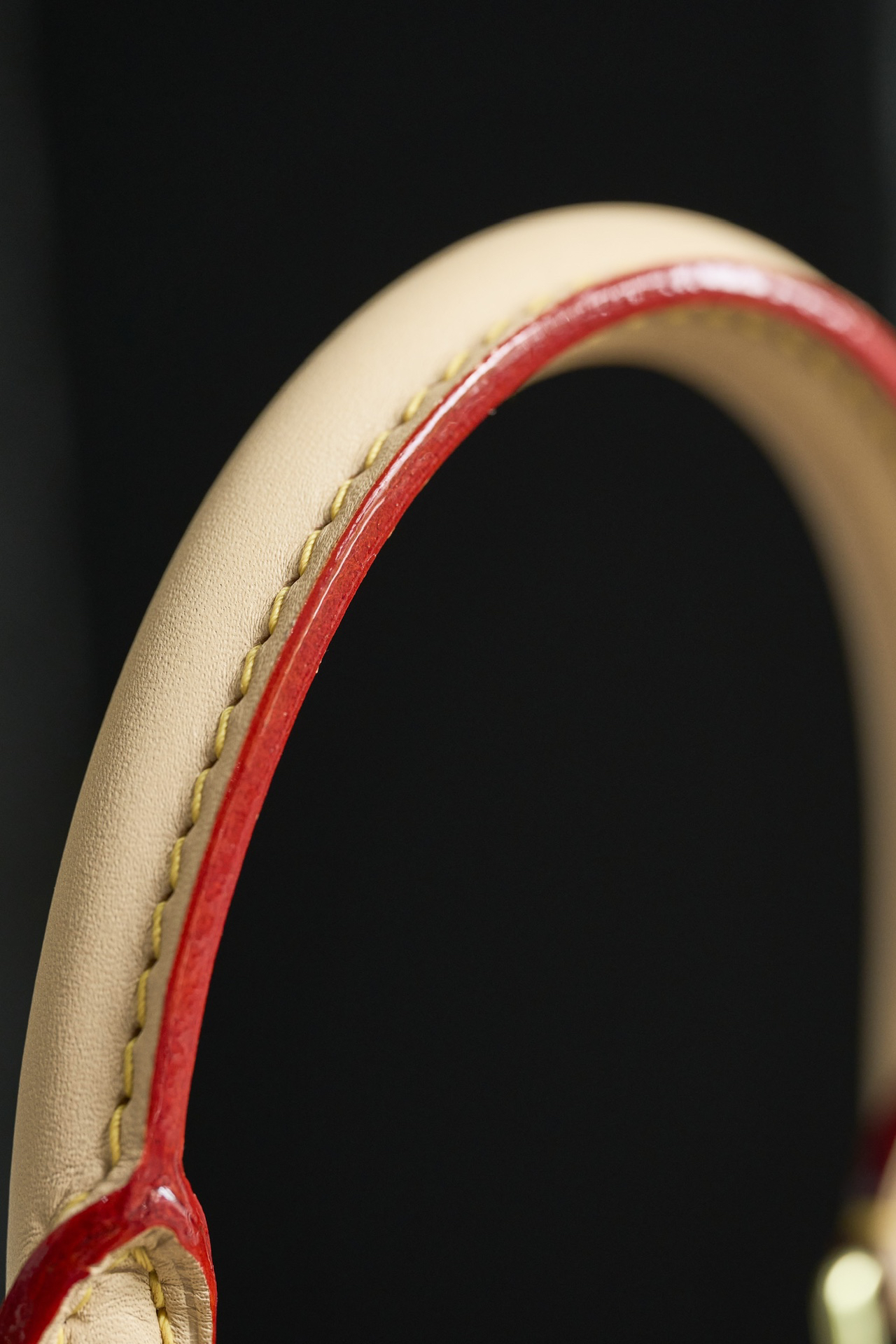 モノグラムキャンバス製のクラシックハンドバッグ(縦19.0x横25.0xマチ15.0cm)。調整可能なレザーショルダーストラップ(最大50cm)を備え、手持ち・ショルダー・クロスボディの3WAYで使用可能。軽量設計(約600g)でありながら、スマートフォン・長財布・化粧ポーチを整理収納できる複数ポケットを内装に配置。赤いマイクロファイバー生地と金色ハードウェアが高級感を演出。