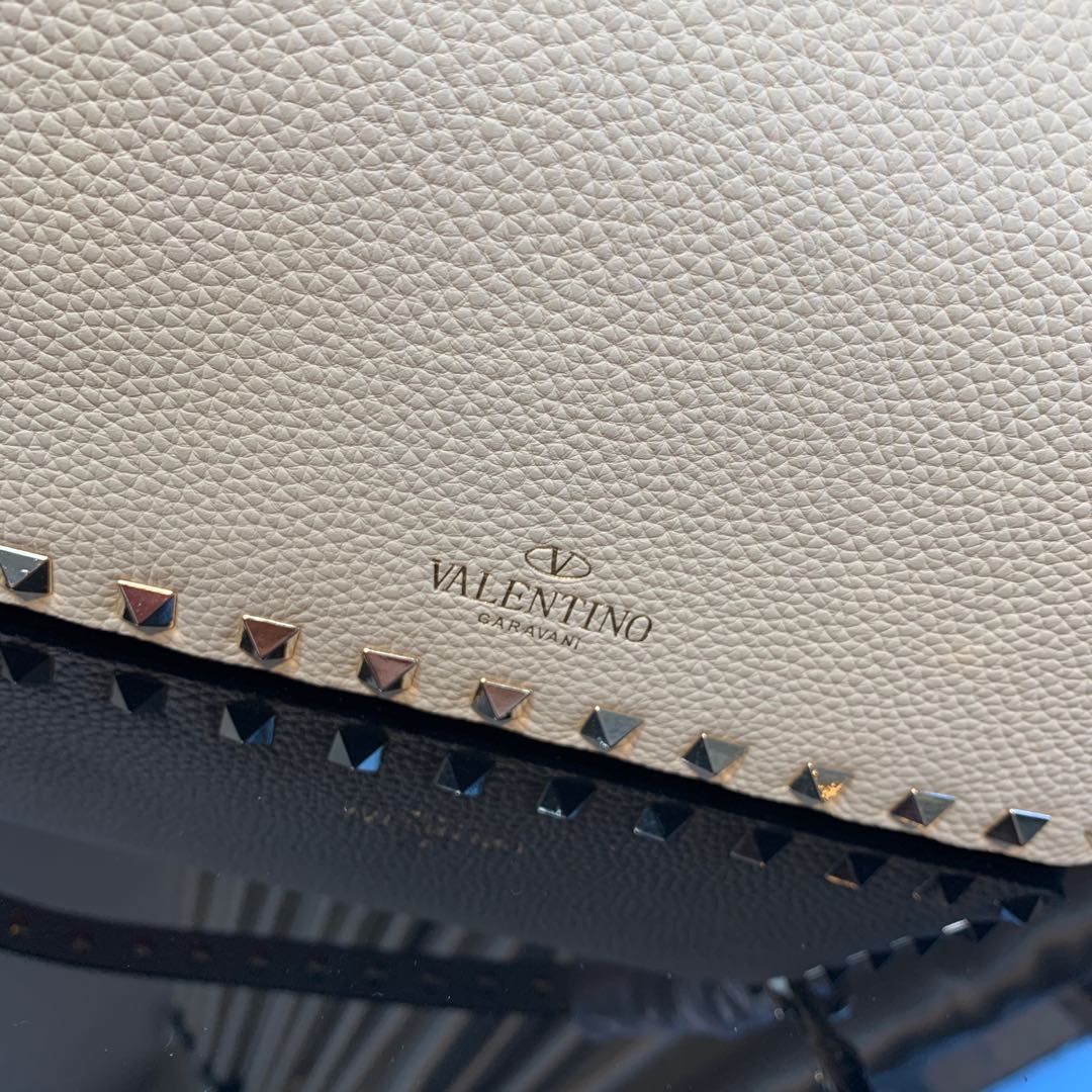 ヴァレンティノの象徴的なフック開閉機構を再解釈したデザインで、シンプルながらもブランドのアイデンティティを強調。 -